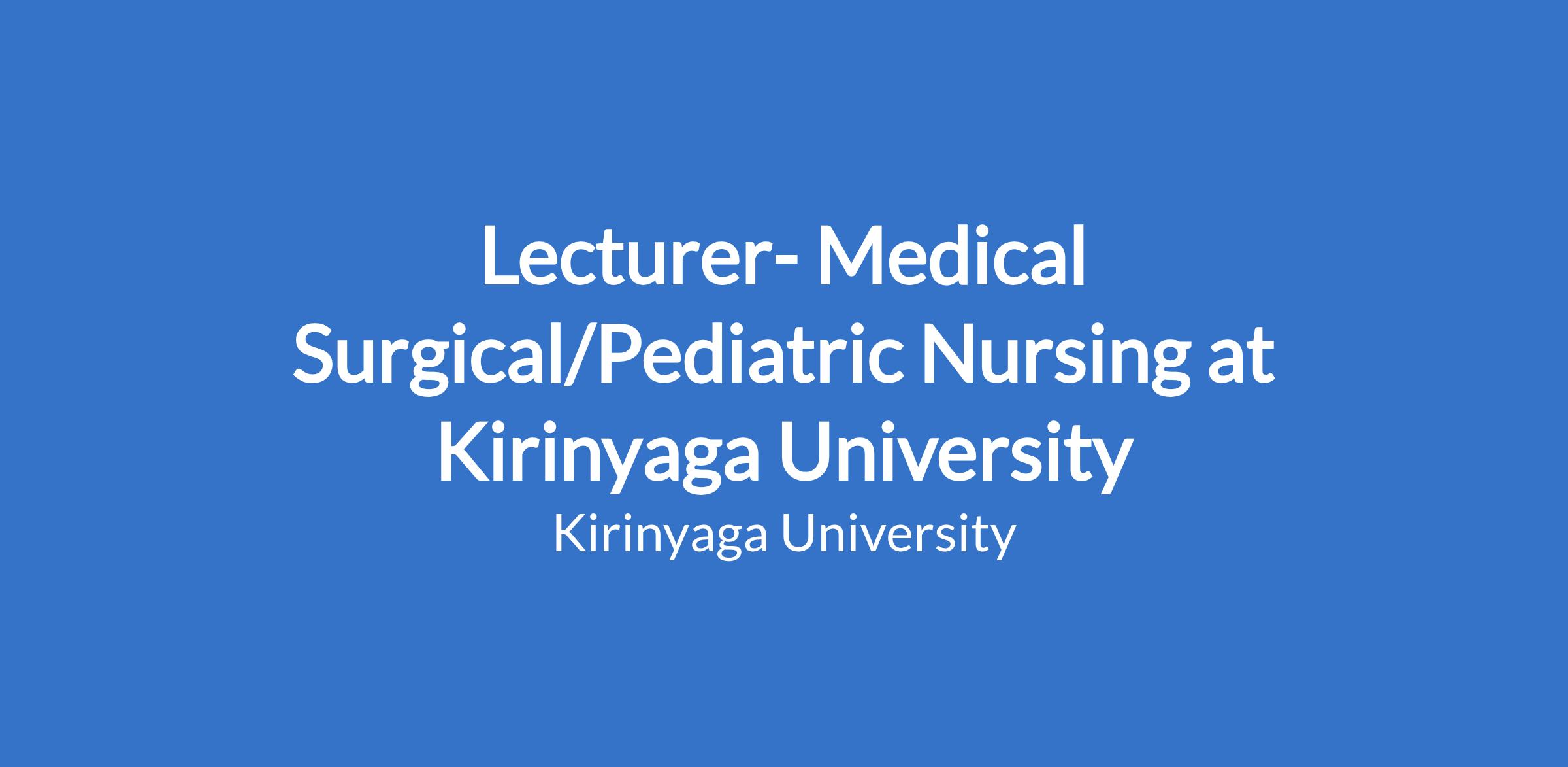 Lecturer- Medical Surgical/Pediatric Nursing at Kirinyaga University