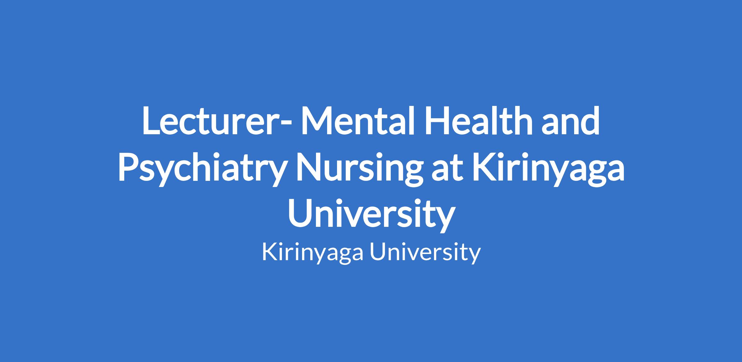 Lecturer- Mental Health and Psychiatry Nursing at Kirinyaga University