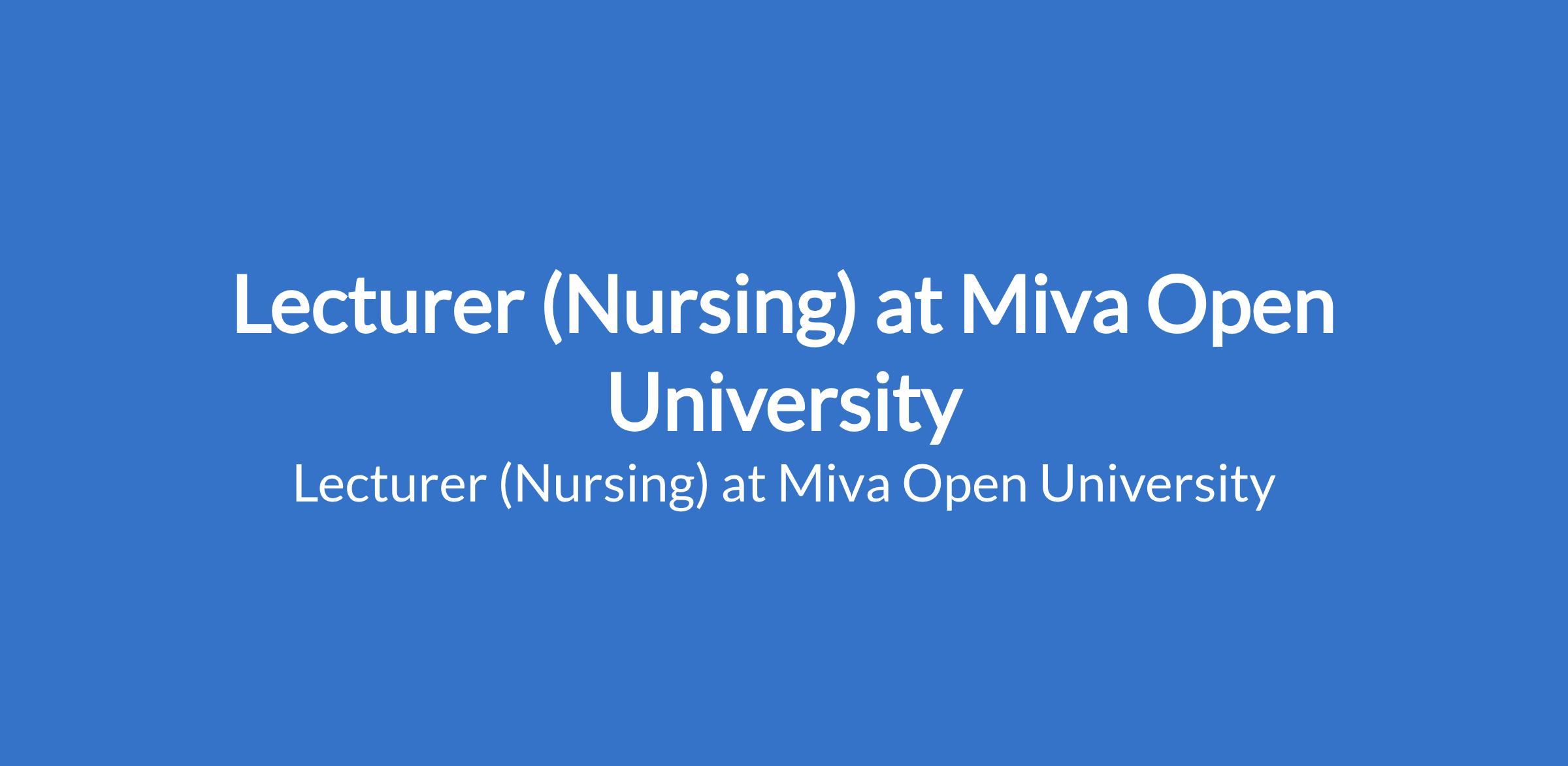 Miva Open University is recruiting to fill the position of: Lecturer (Nursing). The position is located in Abuja (FCT). Salary: N1,000,000 Net - N1,200,000 per month. Interested candidates should posses a PhD in Nursing from an accredited institution; RN certificate licenced by the Nursing and Midwifery Council of Nigeria (NMCN).