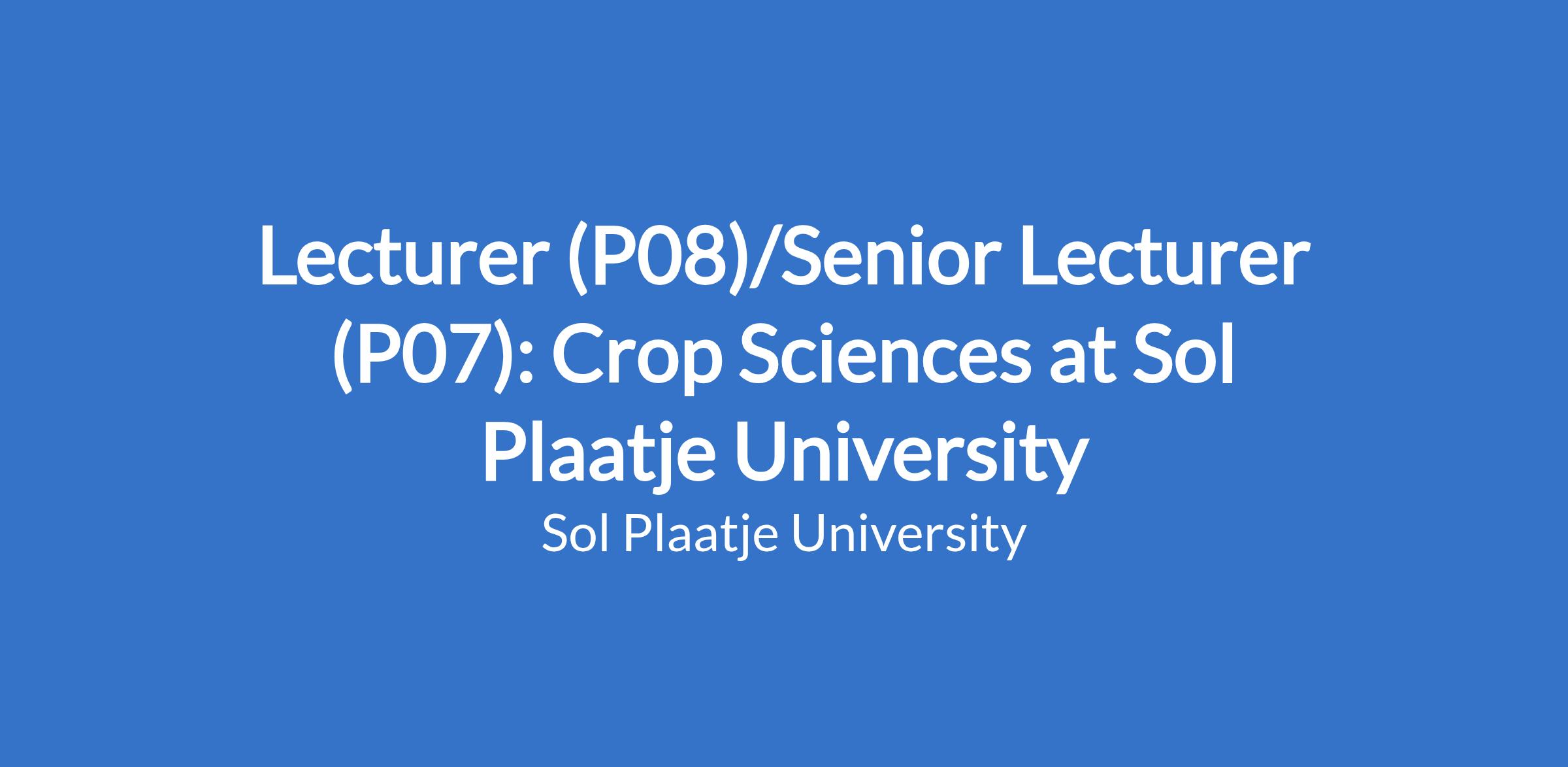 PhD/Doctorate in Agriculture (or related field) with a specialisation in Crop Science/Horticulture.
