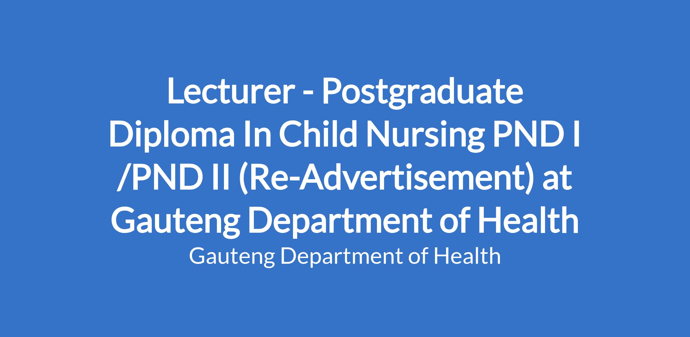 Lecturer - Postgraduate Diploma In Child Nursing PND I /PND II (Re-Advertisement) at Gauteng Department of Health