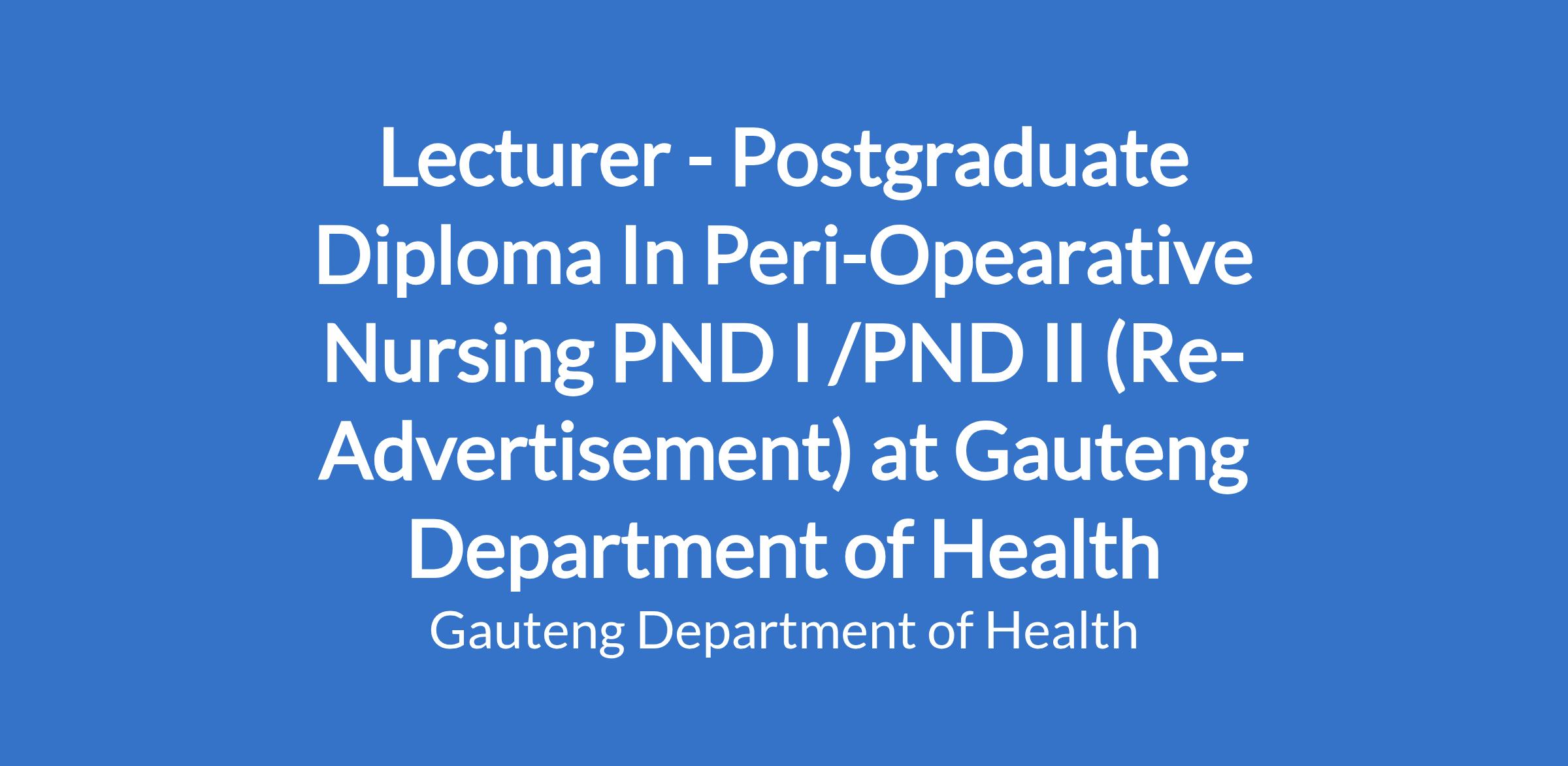 Lecturer - Postgraduate Diploma In Peri-Opearative Nursing PND I /PND II (Re-Advertisement) at Gauteng Department of Health