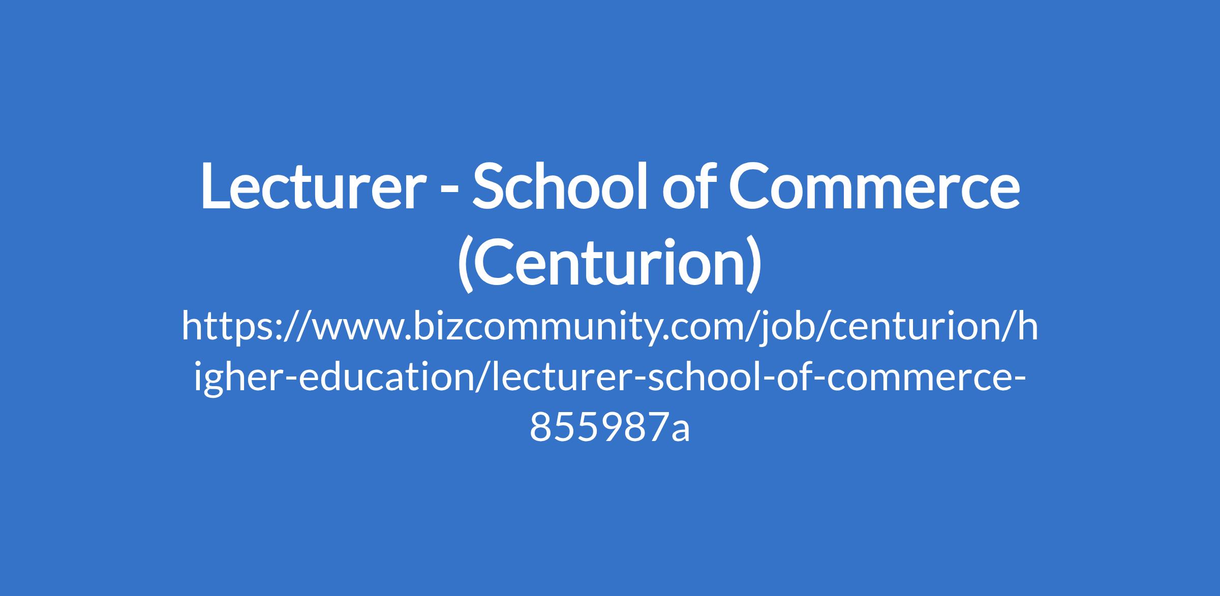 Lecturer - School of Commerce (Centurion)