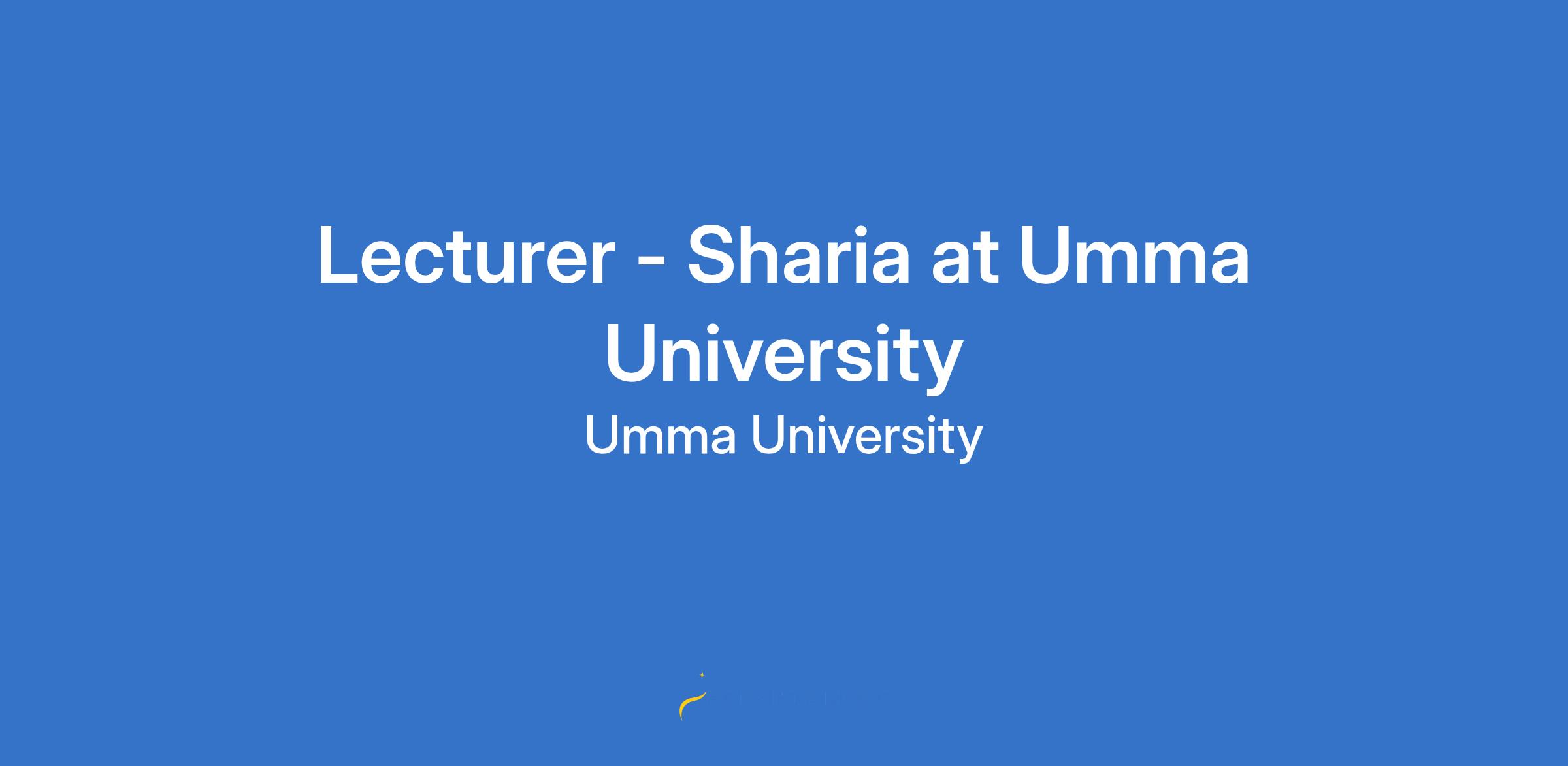 Lecturer - Sharia at Umma University