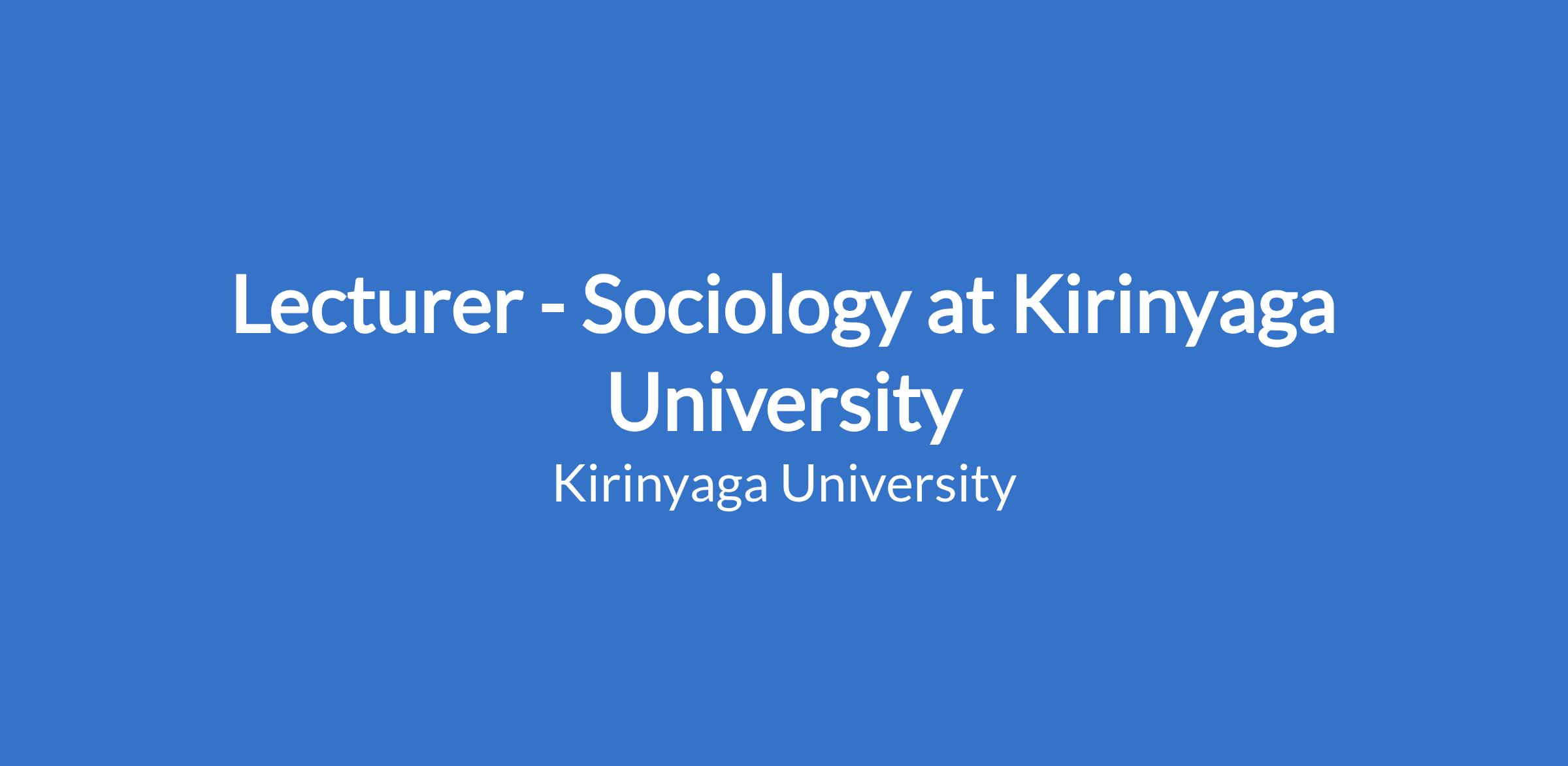 Lecturer - Sociology at Kirinyaga University