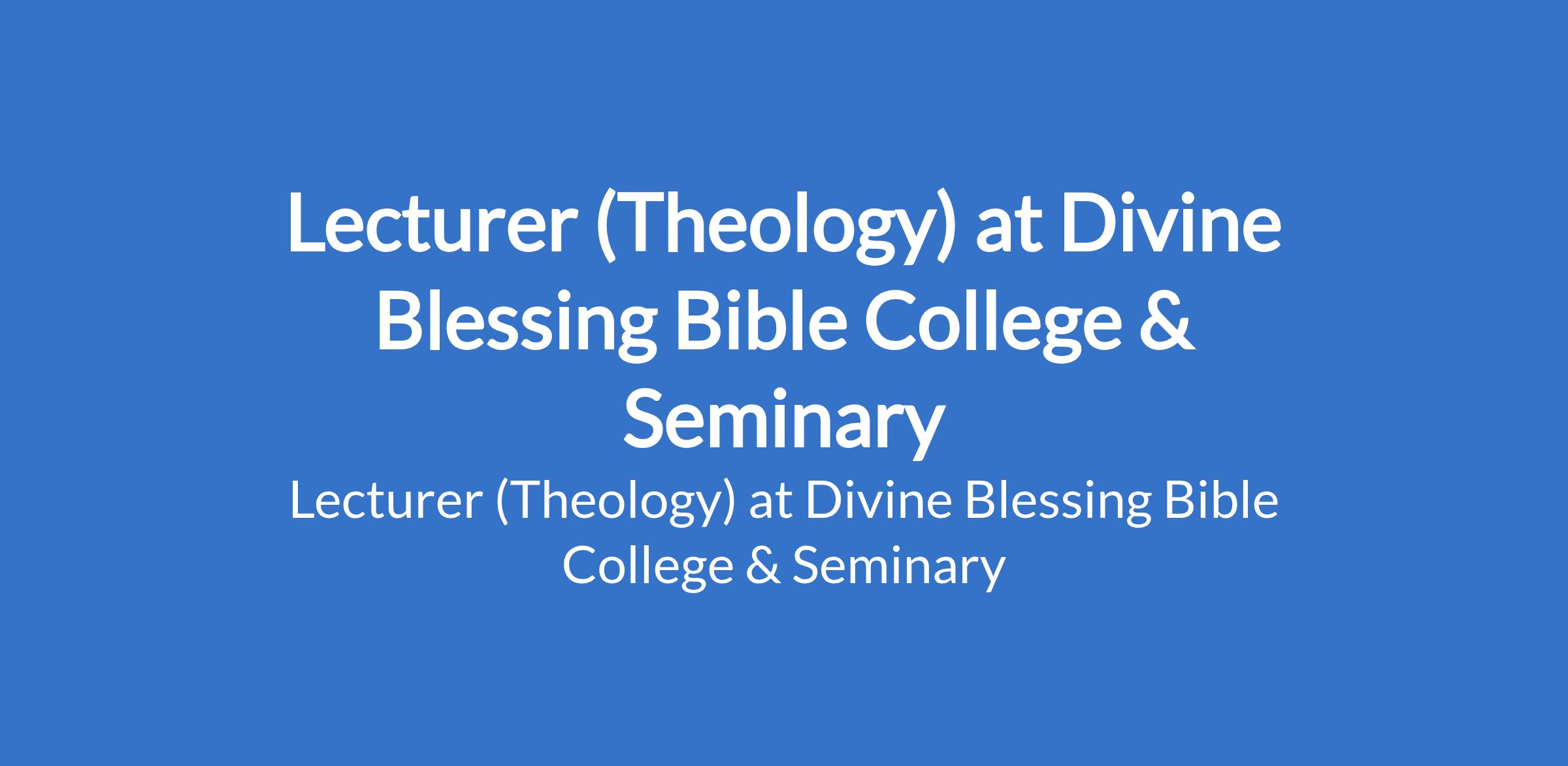 Lecturer (Theology) at Divine Blessing Bible College & Seminary
