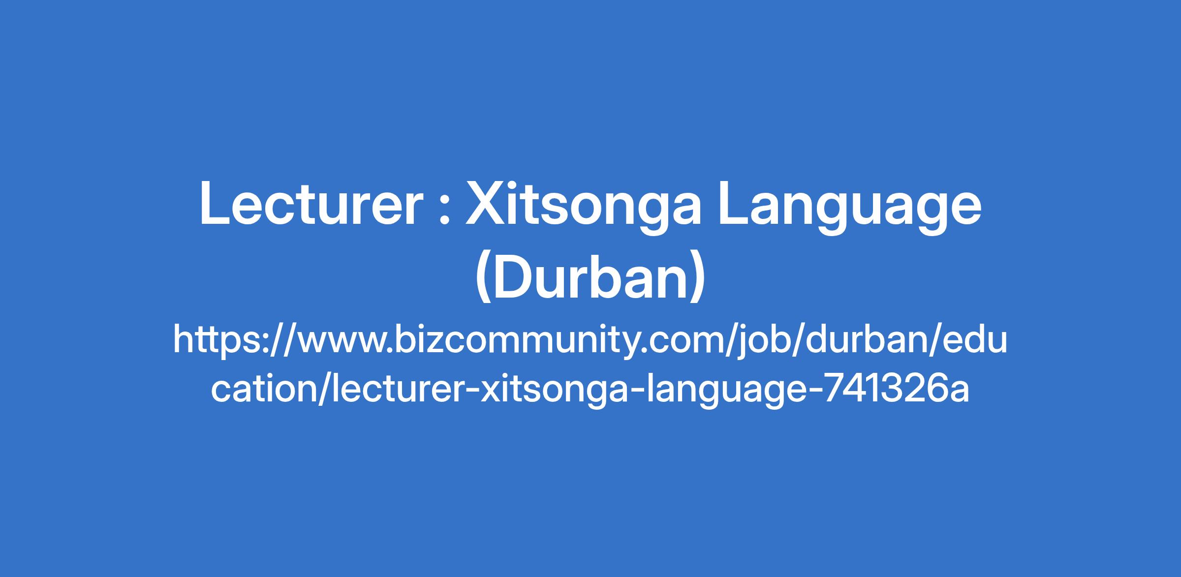 Lecturer : Xitsonga Language (Durban)
