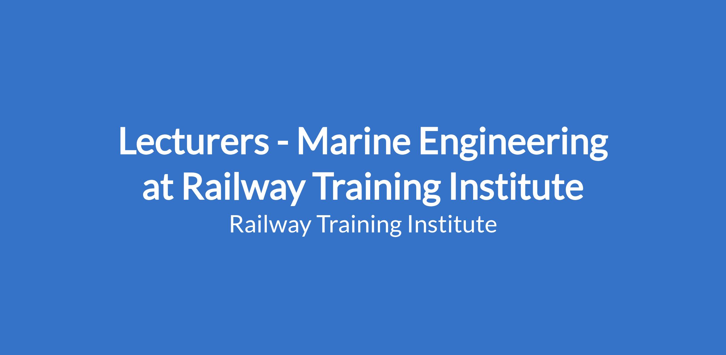 Lecturers - Marine Engineering at Railway Training Institute