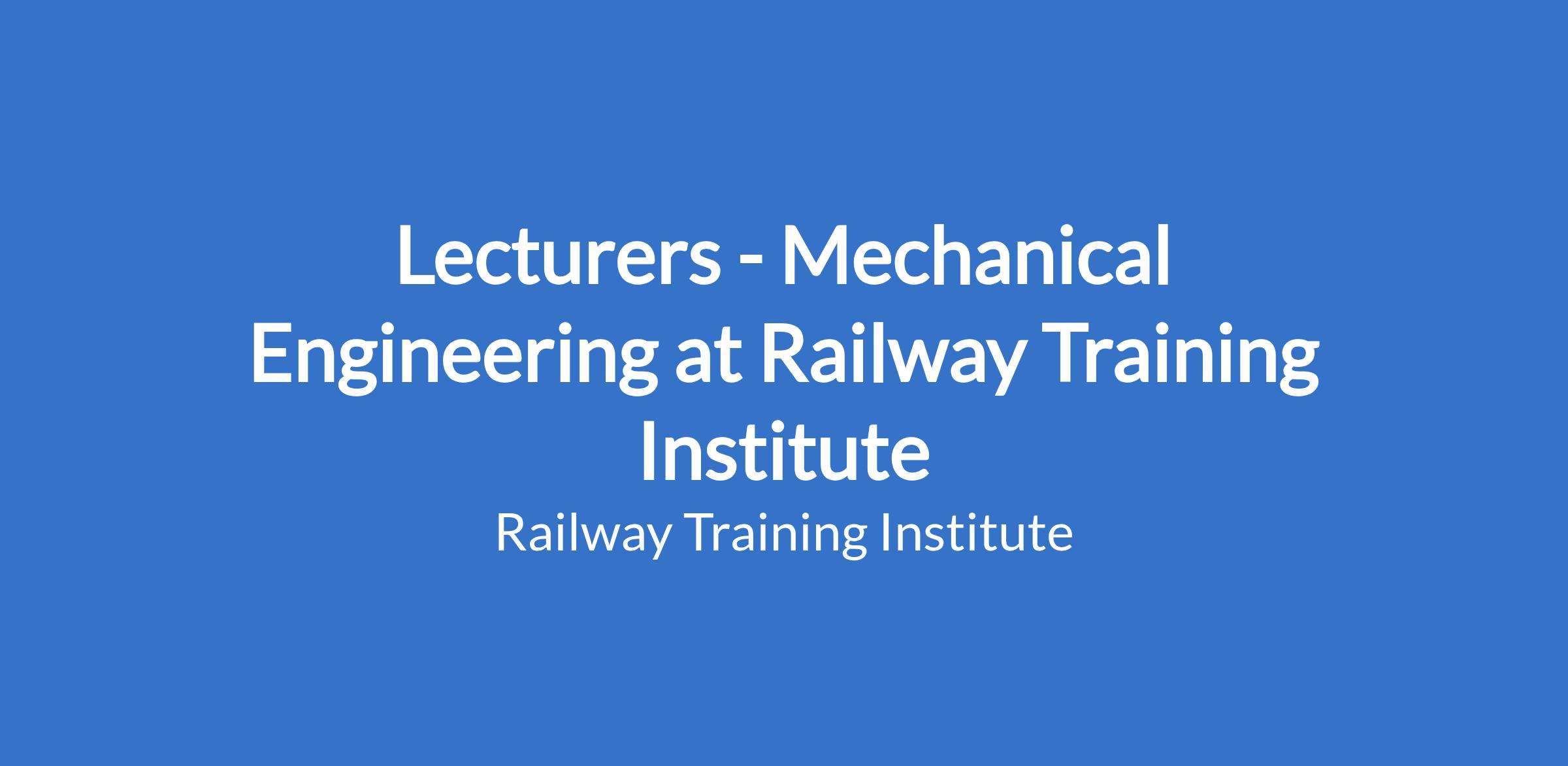 Lecturers - Mechanical Engineering at Railway Training Institute