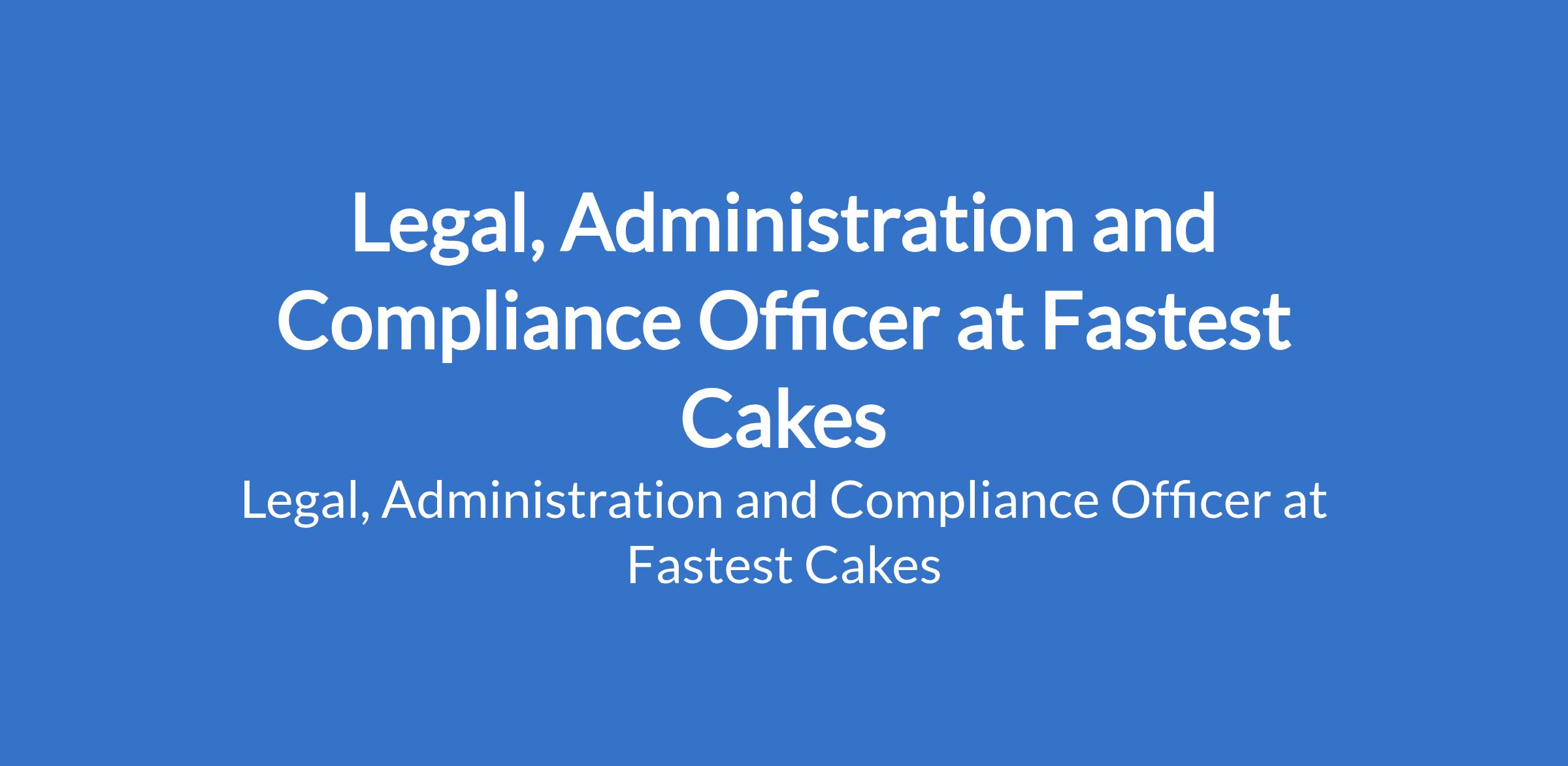 Fastest Cakes is recruiting to fill the position of: Legal, Administration and Compliance Officer. The position is located in Lekki, Lagos State. Interested candidates should possess a Bachelors Degree in Law (LL.B) and Call to the Nigerian Bar (BL) with a minimum of 5 years of experience.