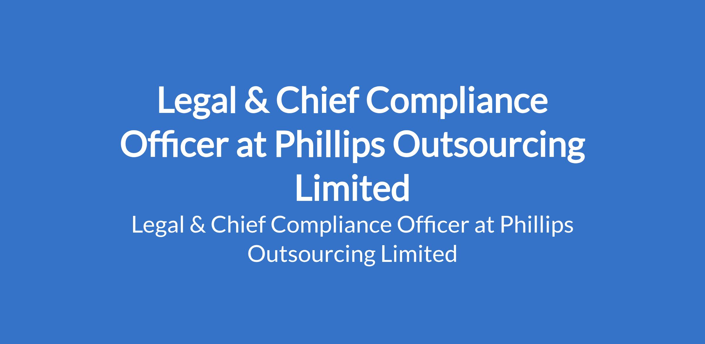 Phillips Outsourcing Limited is recruiting to fill the position of: Legal & Chief Compliance Officer. The position is located in Victoria Island, Lagos State. Interested candidates should possess an LLB and BL Degree with a minimum of 5 years post qualification experience working In-House in a Financial Service Company / in a Private Practice with a Top Corporate / Commercial Law Firm.