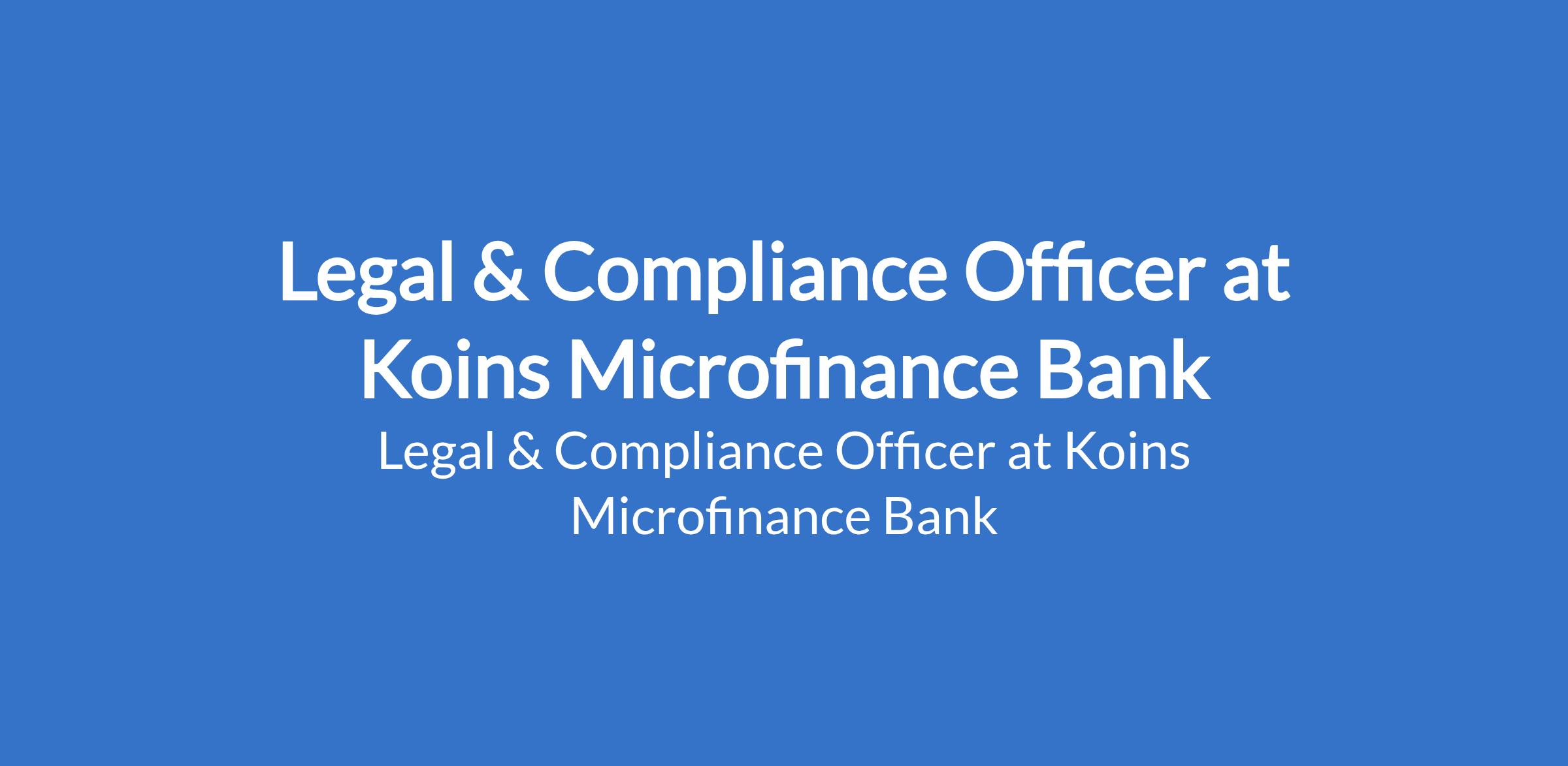 Legal & Compliance Officer at Koins Microfinance Bank