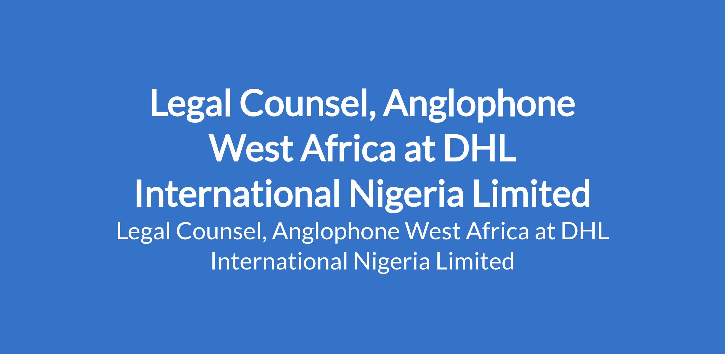 DHL International Nigeria Limited is recruiting to fill the position of: Legal Counsel, Anglophone West Africa. The position is located in Abuja. Interested candidates should possess relevant qualifications with 3 - 5 years of legal experience (law firm or in-house).
