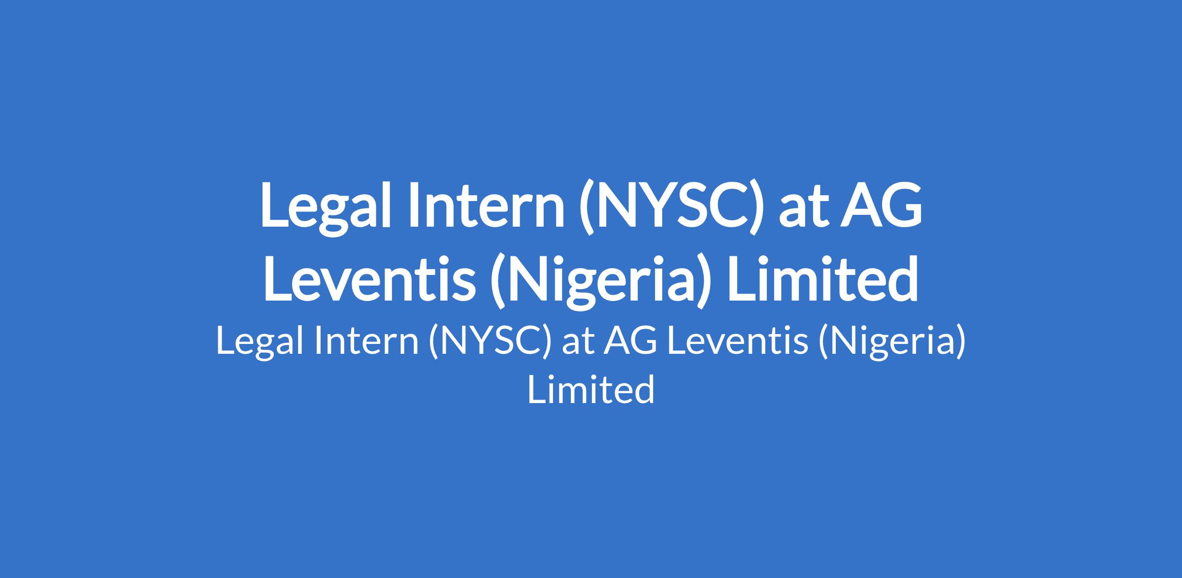 AG Leventis (Nigeria) Limited is recruiting to fill the position of: Legal Intern (NYSC). The position is located in Apapa, Lagos State. Interested candidates should possess relevant qualifications.