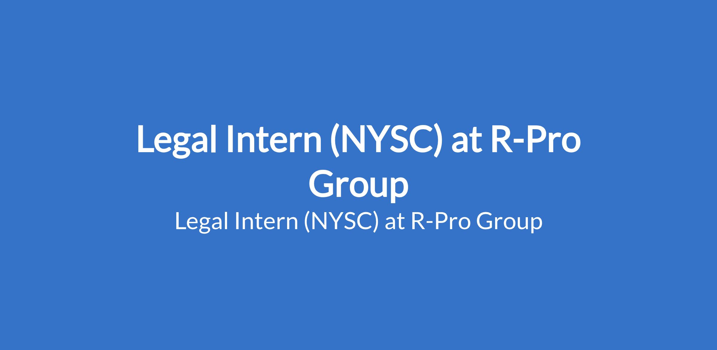 Legal Intern (NYSC) at R-Pro Group