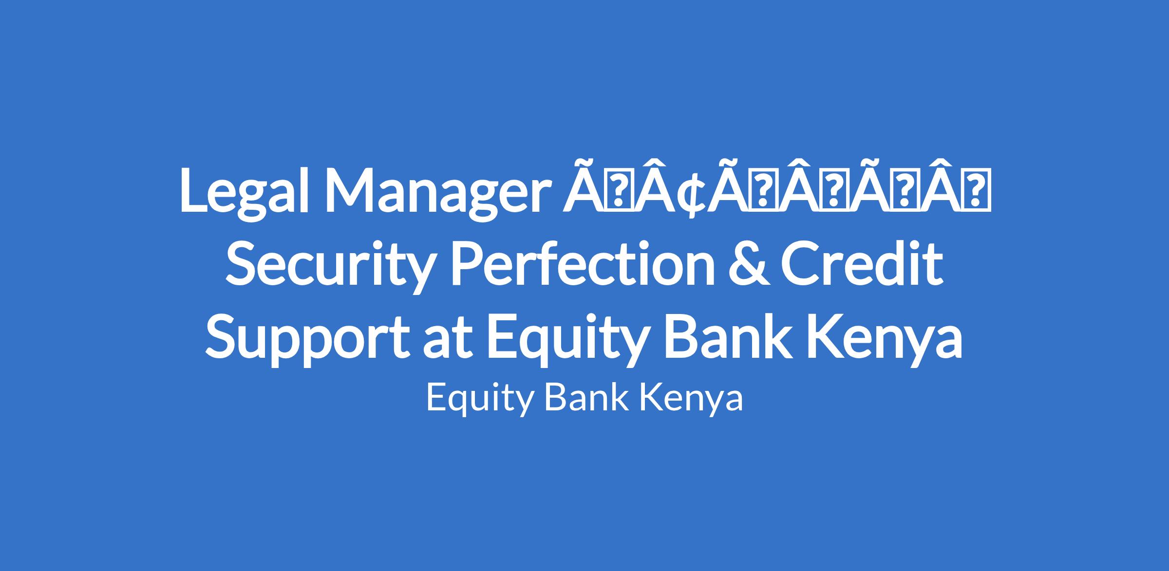 Legal Manager âÃÂàSecurity Perfection & Credit Support at Equity Bank Kenya