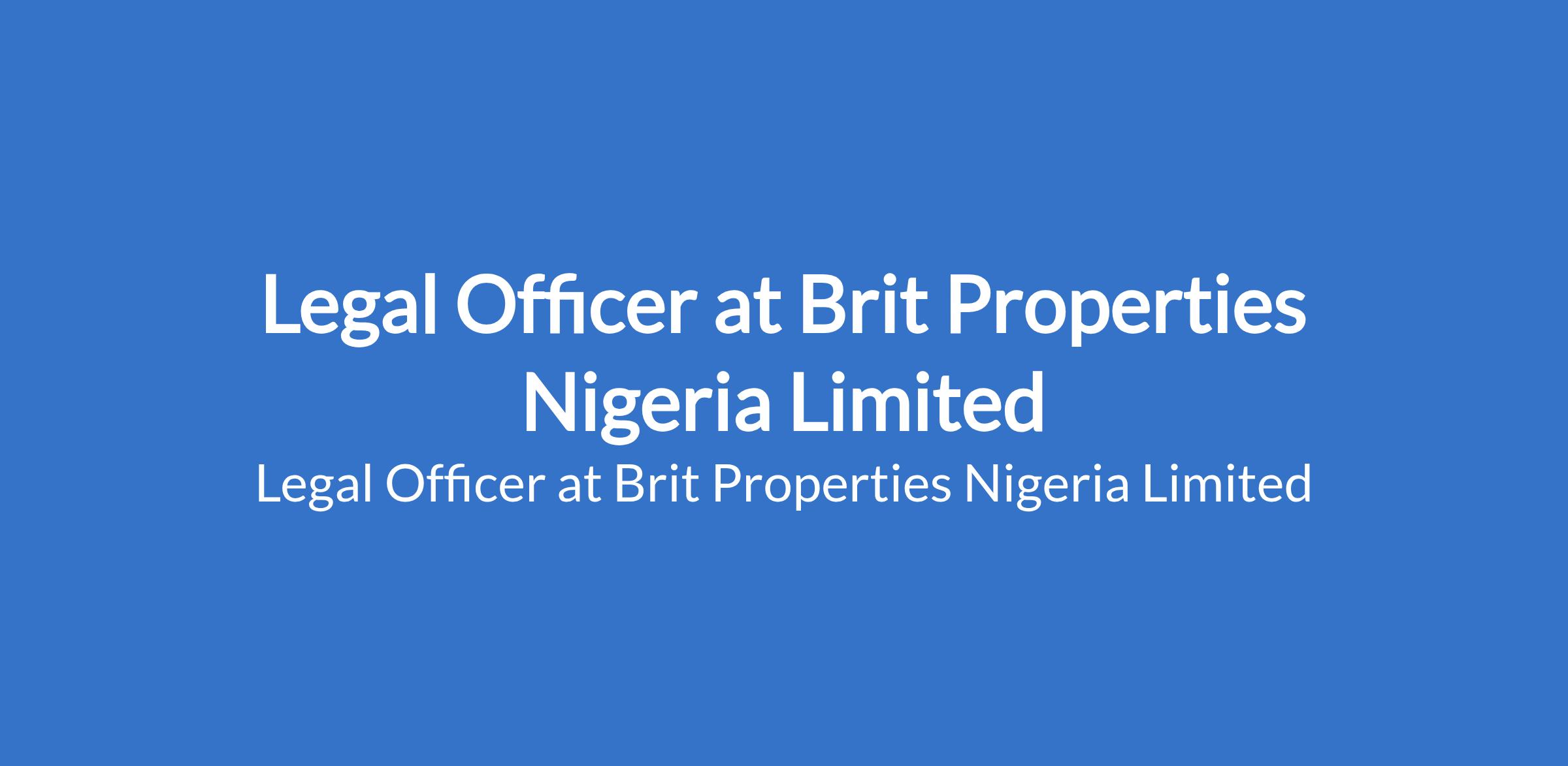 Brit Properties Nigeria Limited is recruiting to fill the position of: Legal Officer. The position is located in Ajah, Lagos State. Salary: N150,000 - N170,000 / month. Interested candidates should possess a Bachelors Degree in Law (LL.B) with 13 years post-NYSC legal practice experience.
