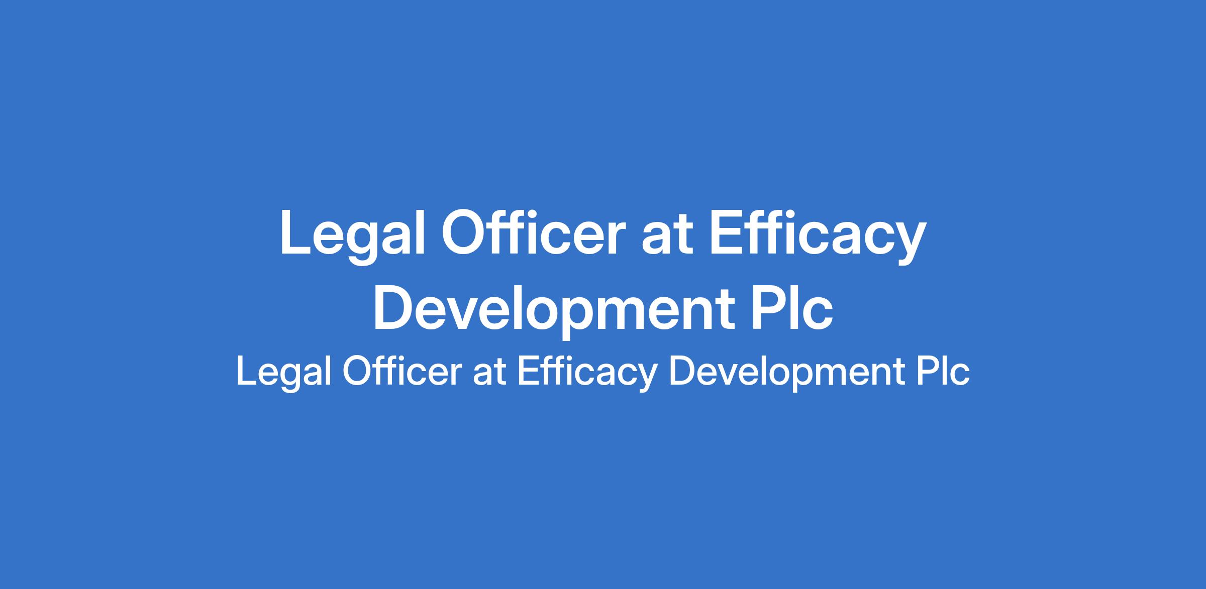 Efficacy Development Plc is recruiting to fill the position of: Legal Officer. The position is located in Ikoyi, Lagos State. Interested candidates should possess a Bachelors Degree in Law (LL.B); a BL qualification with 3 5 years of relevant experience in a real estate, construction, or property development firm.