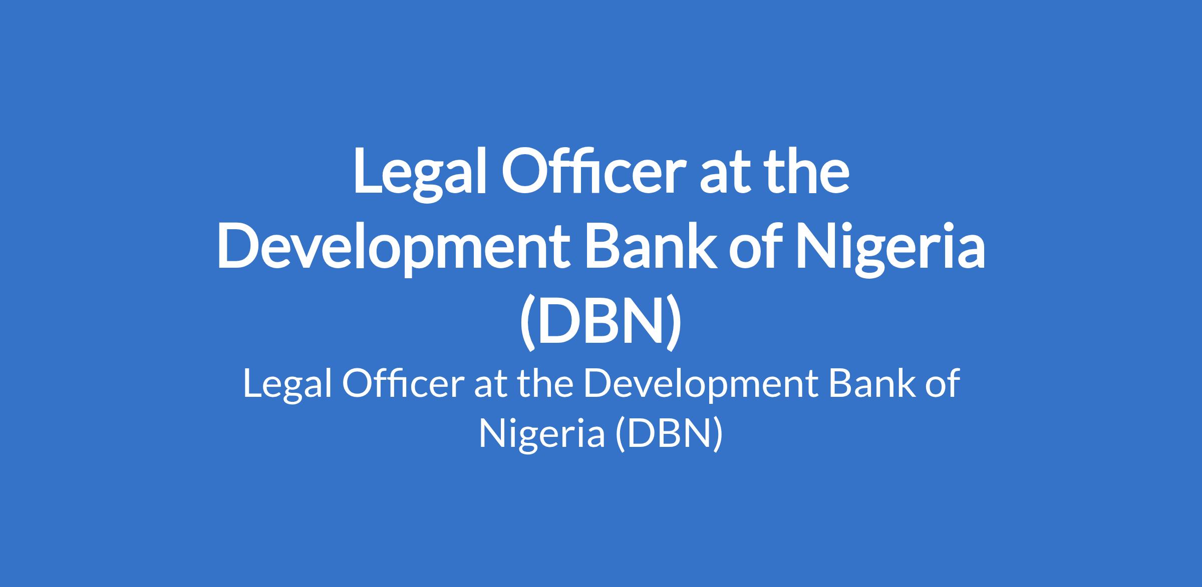 Legal Officer at the Development Bank of Nigeria (DBN)