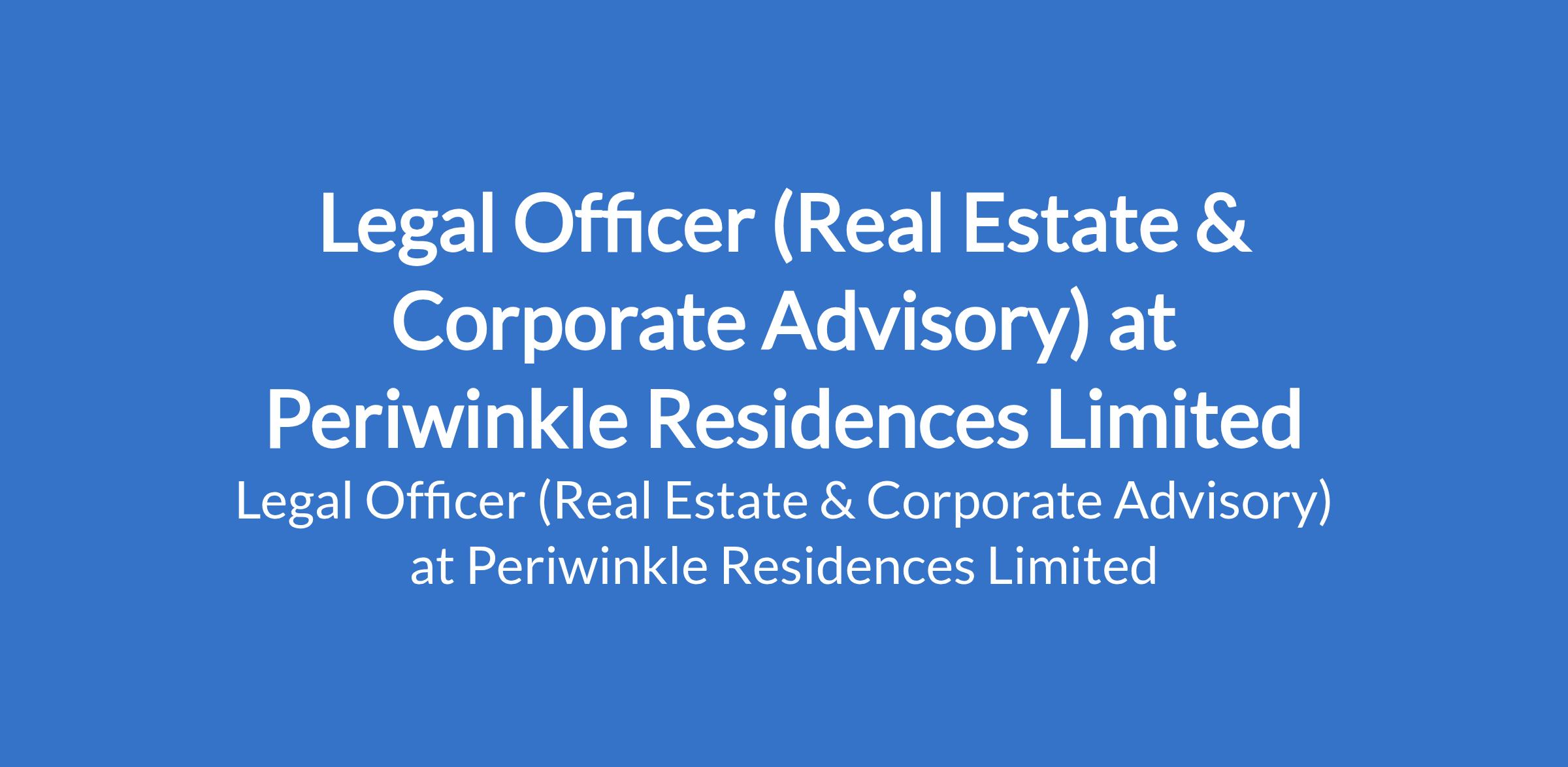 Periwinkle Residences Limited is recruiting to fill the position of: Legal Officer (Real Estate & Corporate Advisory). The position is located in Lekki, Lagos State. Interested candidates should possess a Bachelor of Laws (LL.B) and qualification to practice in Nigeria with up to 10 years total post-call experience, with a minimum of 4 years in real estate law.