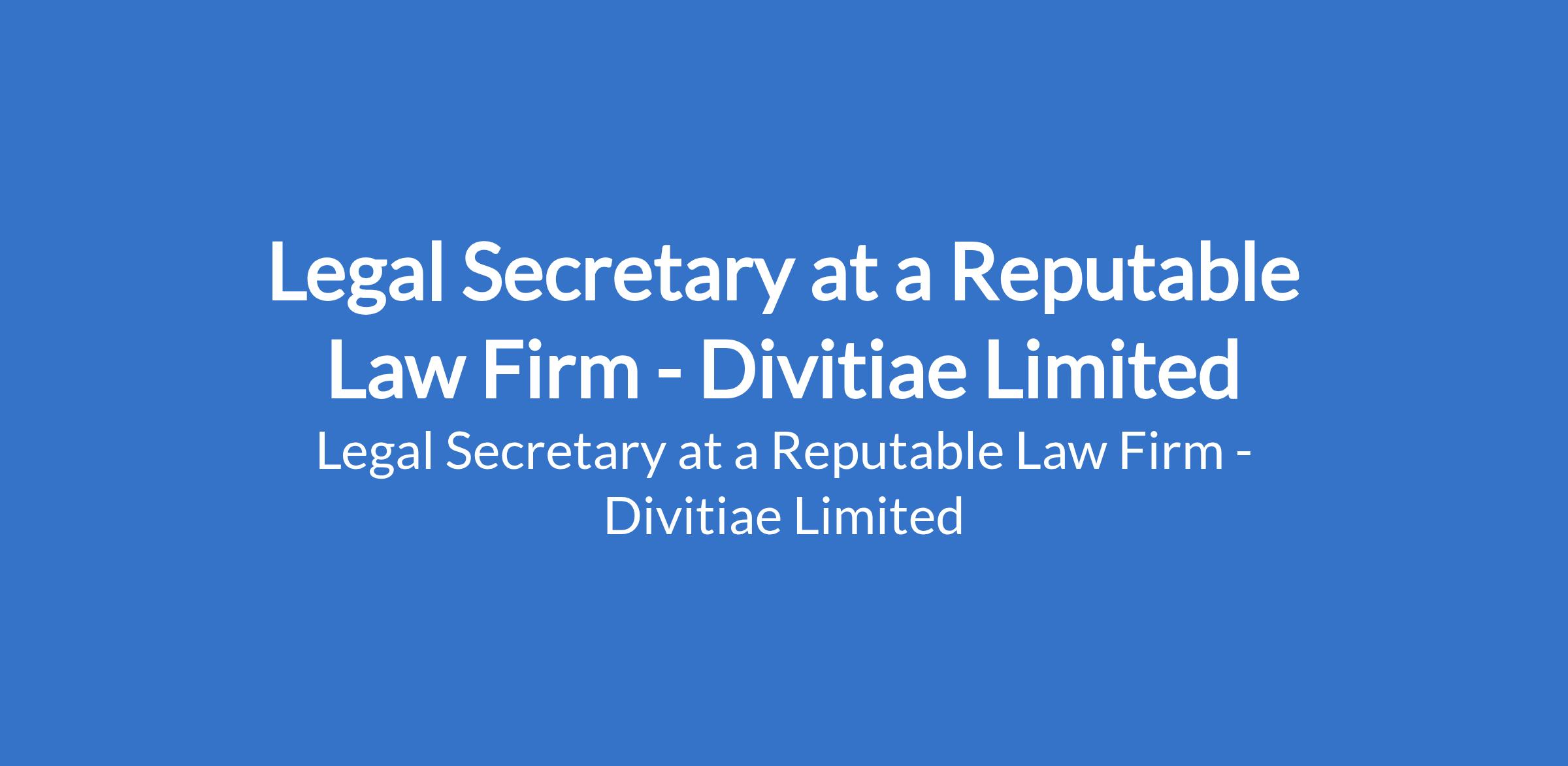 Divitiae Limited - Our client, is recruiting to fill the position of: Legal Secretary. The position is located in Yaba, Lagos State. Interested candidates should possess a Diploma / HND / B.Sc with 5 years of experience in a similar role, excellent communication, organizational & time management skills and excellent in the use of Microsoft Office (Word, Excel, PowerPoint).