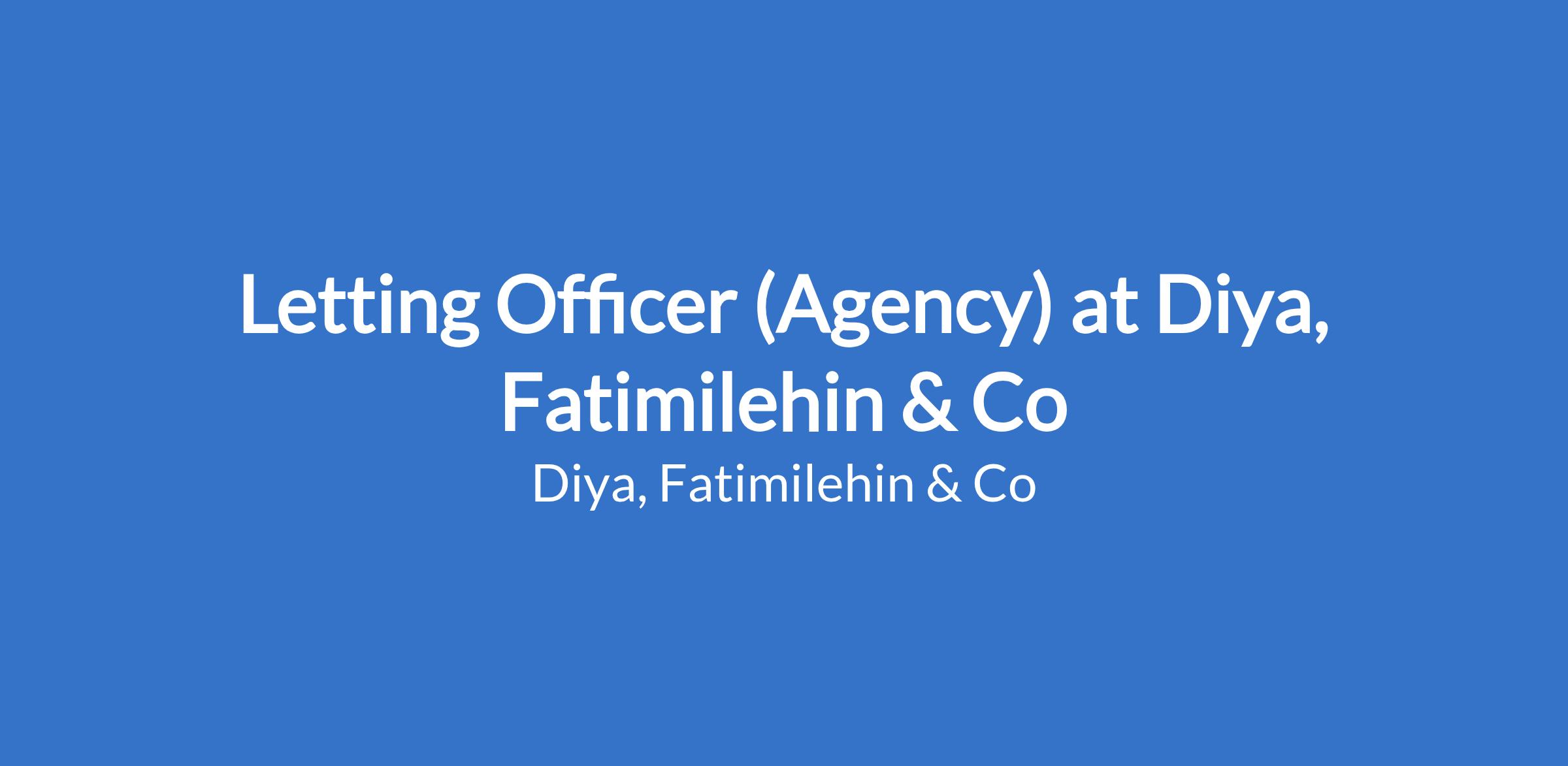 Diya, Fatimilehin & Co. is seeking experienced Letting Officers to connect homeowners with suitable tenants while delivering exceptional client service.