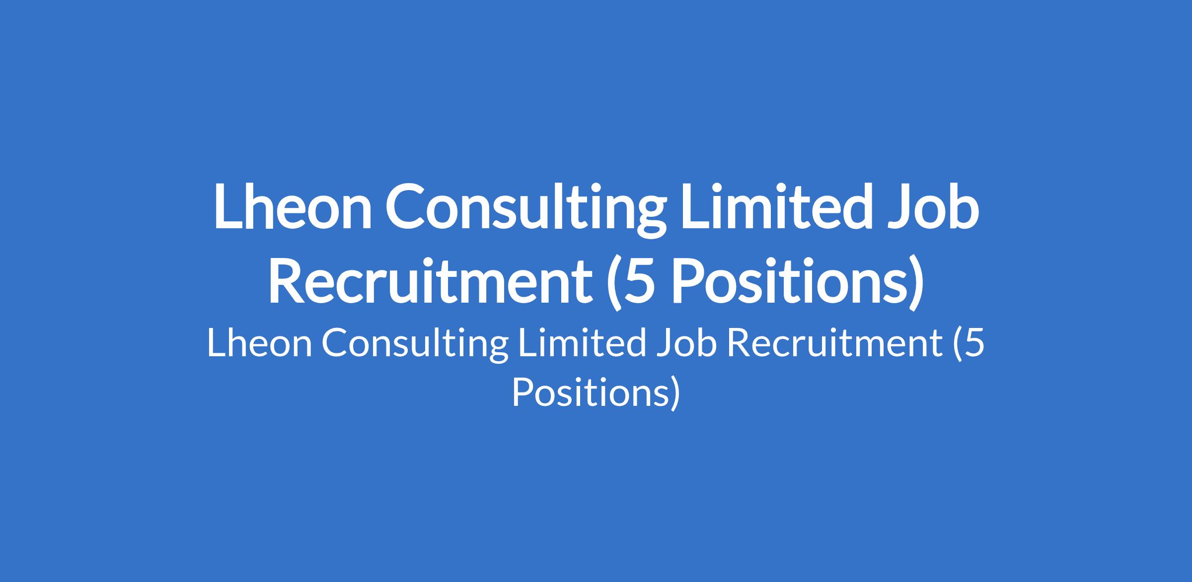 Lheon Consulting Limited is currently recruiting suitably qualified candidates to fill the following positions in Lagos State: SME Finance Relationship Officer, Lease Officer, Deposit Mobilization Officer, General Manager, Leasing Operations, and Branch Manager.