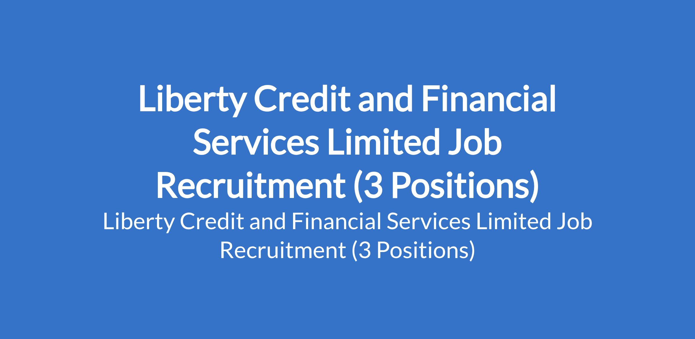 Liberty Credit and Financial Services Limited Job Recruitment (3 Positions)