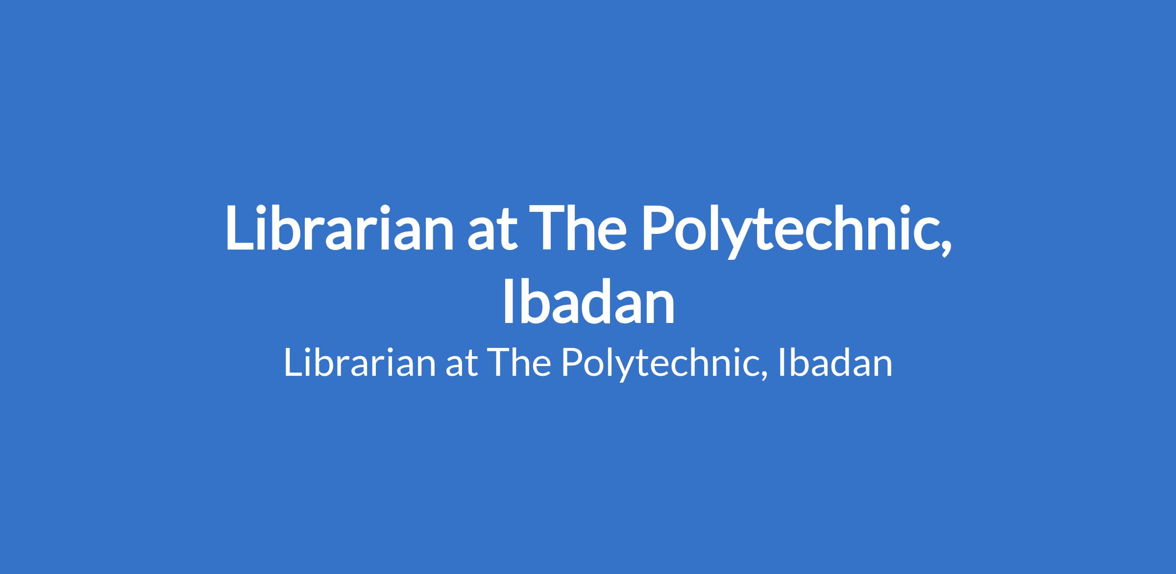 The Polytechnic, Ibadan invites applications from suitable candidates to fill the position of: Librarian. The position is located in Oyo State. Interested candidates should possess a good honours Degree and a postgraduate Degree at Master's Degree level in Library Studies with a minimum of fifteen (15) years cognate experience. Possession of Doctorate (Ph.D.) Degree will be an added advantage.