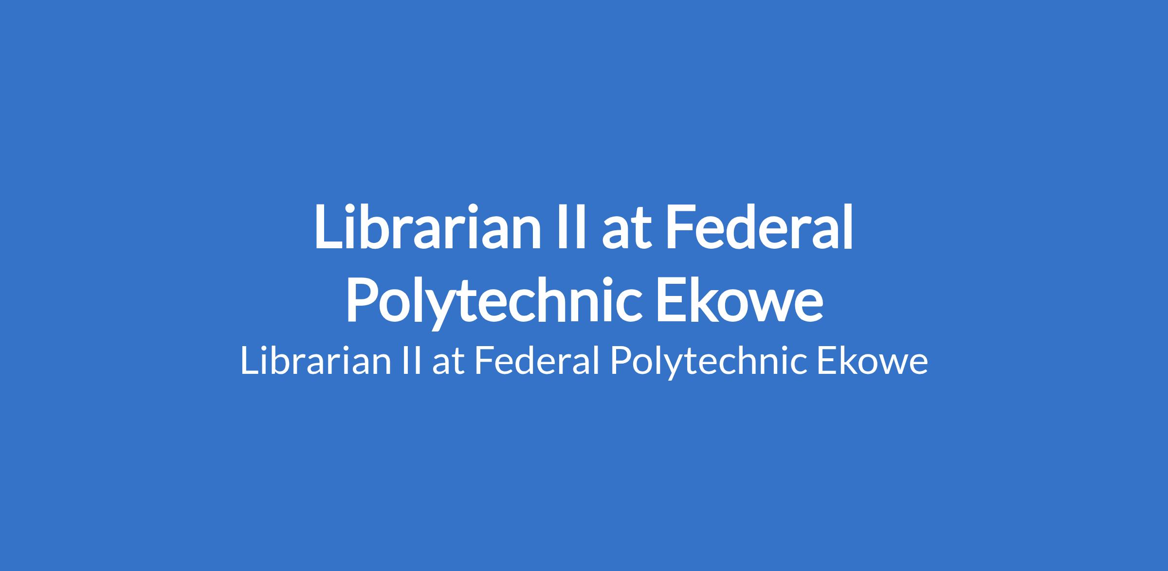 The Federal Polytechnic Ekowe invites applications from suitably qualified candidates for the position of: Librarian II. The position is located in Bayelsa State. Interested candidates should possess a good Bachelor's Degree with a minimum of Second-Class Lower Division in Library Science, plus NYSC Certificate.