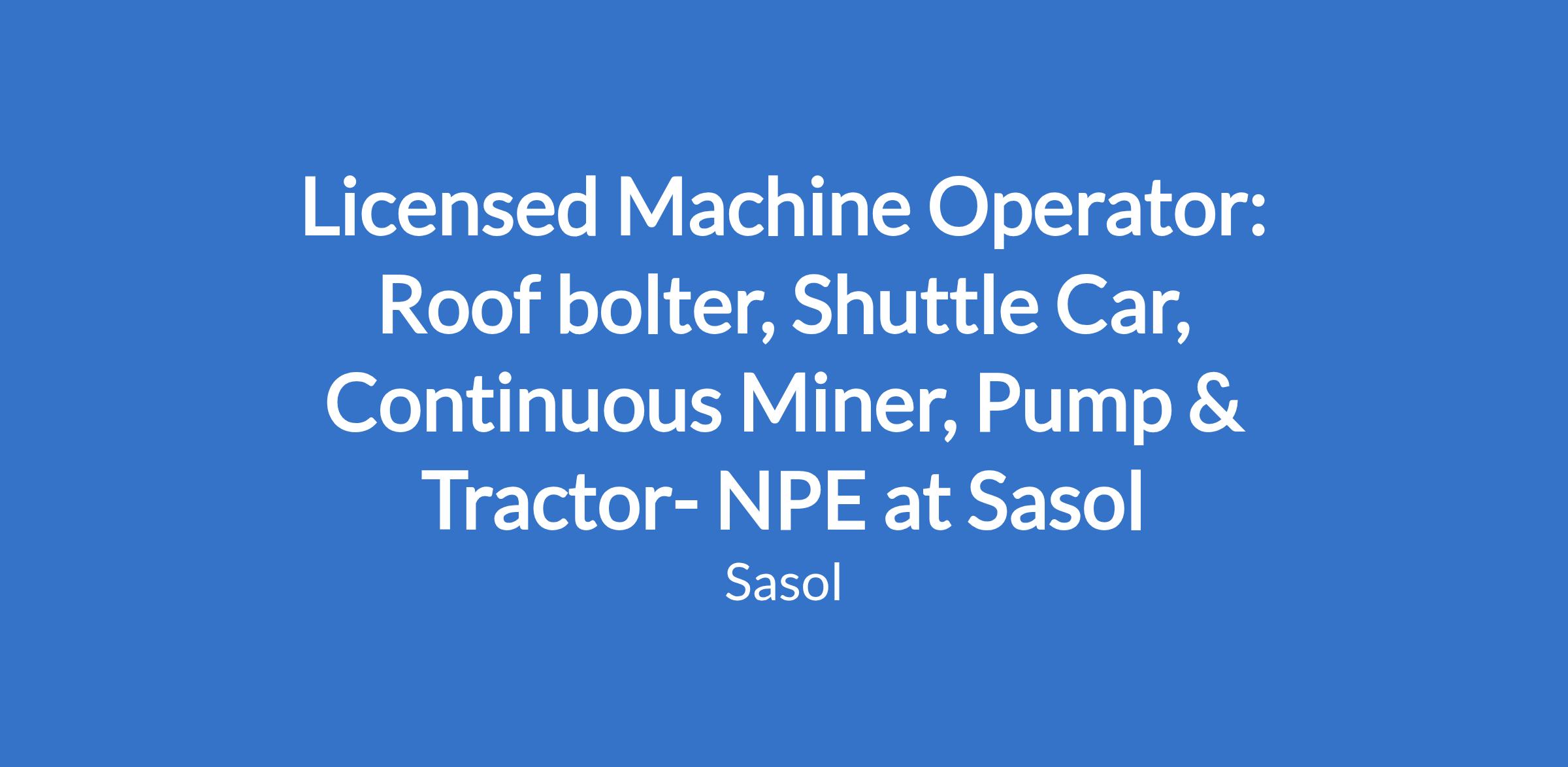 Licensed Machine Operator: Roof bolter, Shuttle Car, Continuous Miner, Pump & Tractor- NPE at Sasol