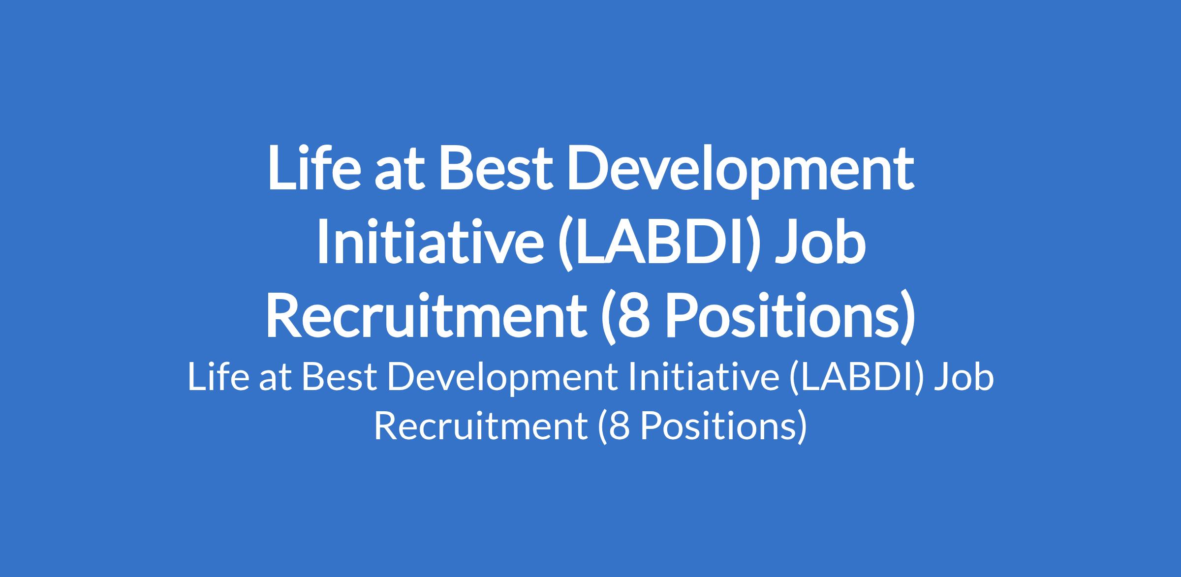 Life at Best Development Initiative (LABDI) is recruiting suitably qualified candidates to fill the following positions in Yobe and Borno States: Child Protection Assistant, GBV Assistant, GBV Officer, Child Protection Officer, Accountability Officer, Monitoring, Evaluation, Accountability and Learning (MEAL) Officer, Monitoring, Evaluation, Accountability and Learning (MEAL) Assistant, and Logistics Assistant.