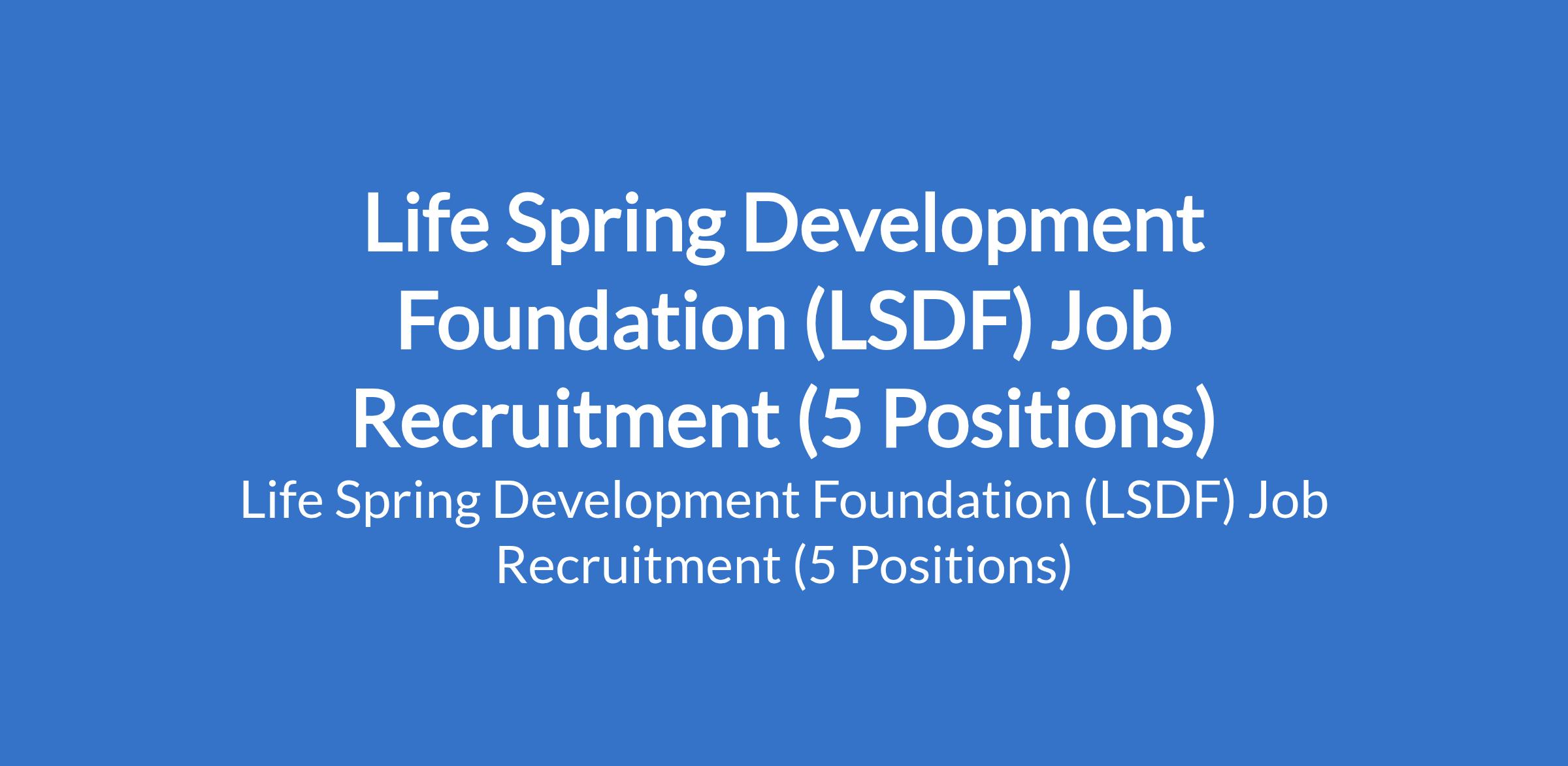 Life Spring Development Foundation (LSDF) is recruiting suitable candidates to fill the following positions in Abuja: Program Manager, Quality Assurance (QA) Specialist, State Program Officer, Procurement & Administration Officer, and Front Desk Assistant
