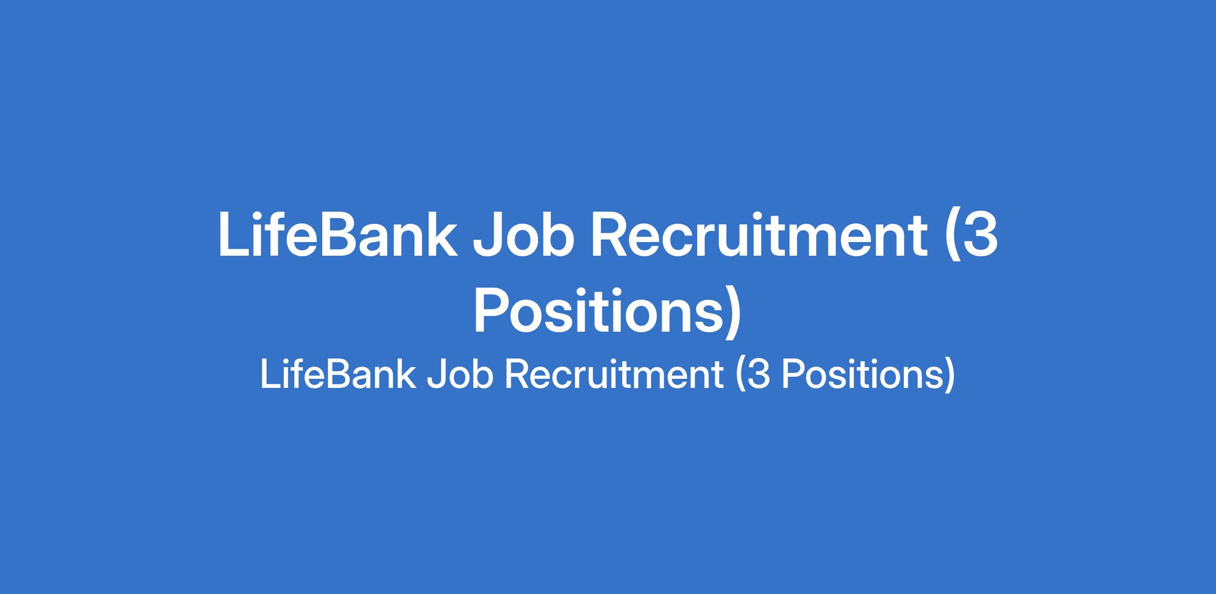 LifeBank Job Recruitment (3 Positions)
