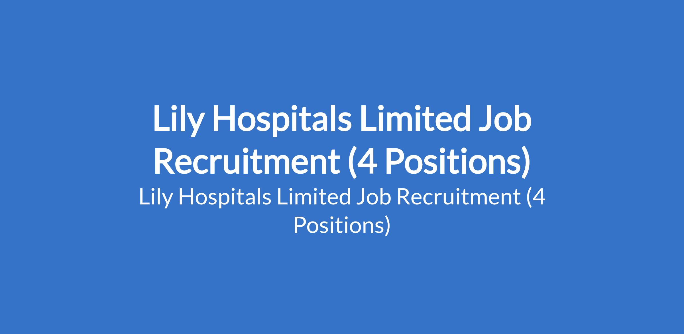 Lily Hospitals Limited Job Recruitment (4 Positions)