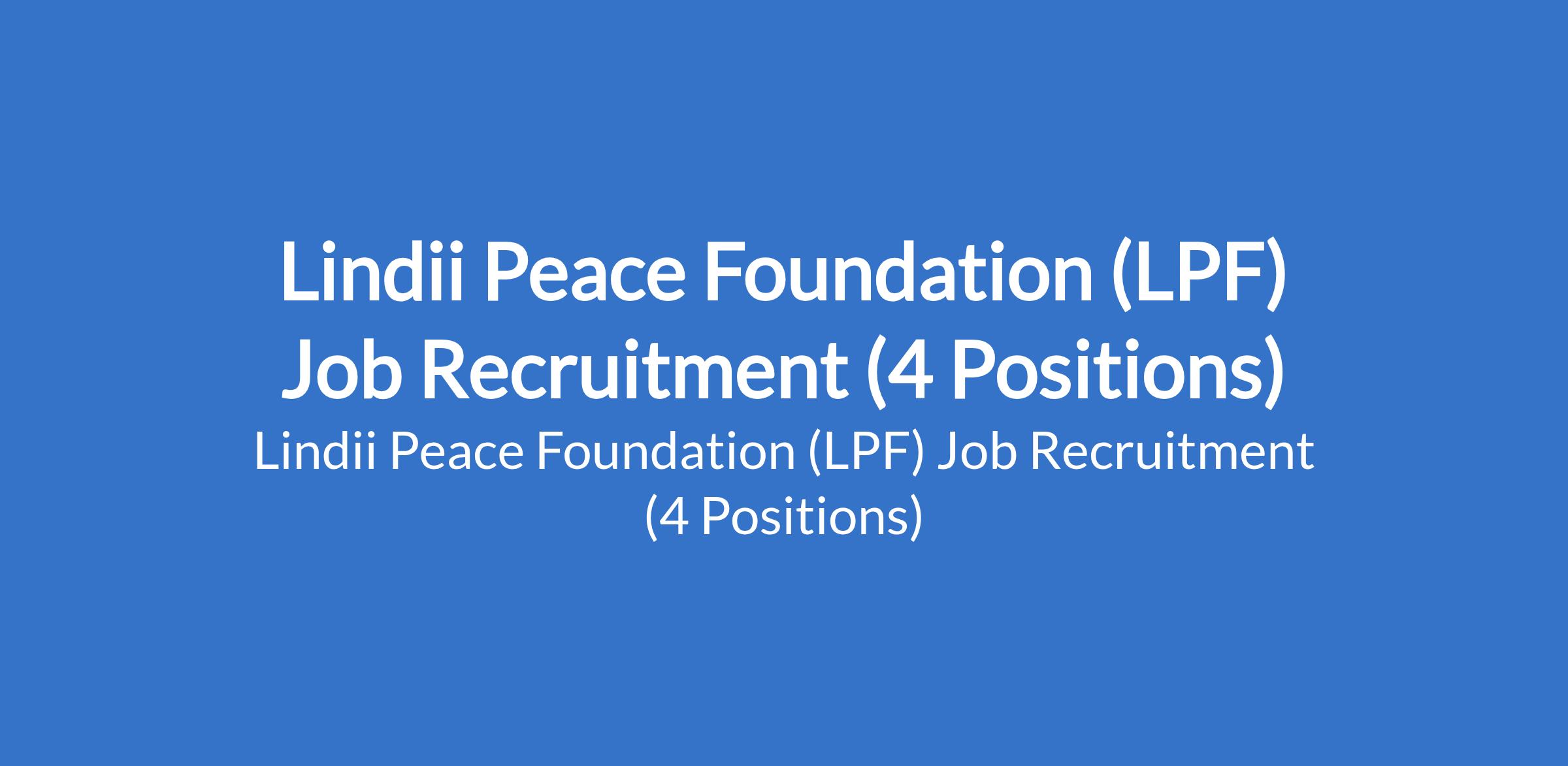 Lindii Peace Foundation (LPF) Job Recruitment (4 Positions)