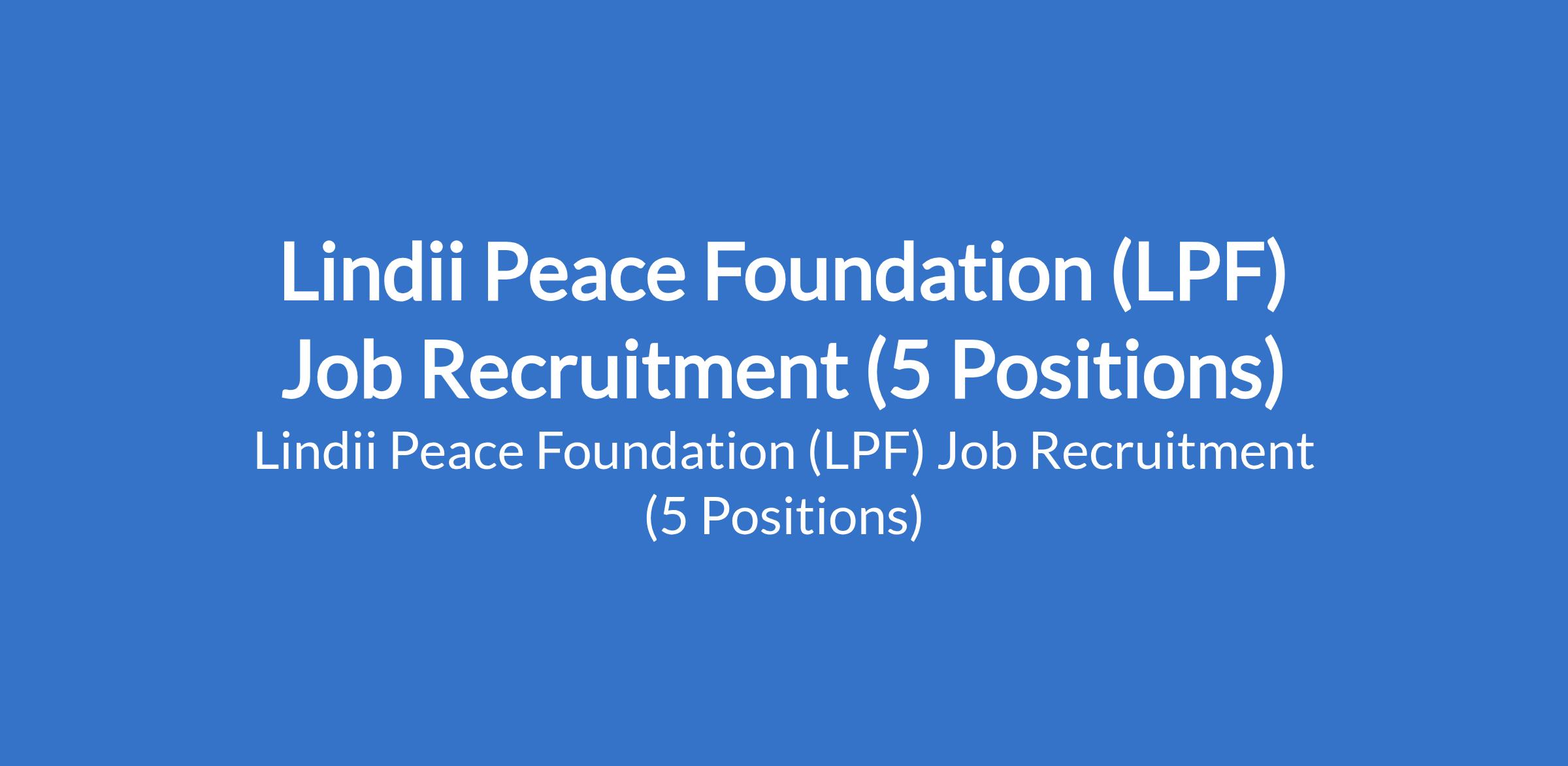 Lindii Peace Foundation (LPF) Job Recruitment (5 Positions)