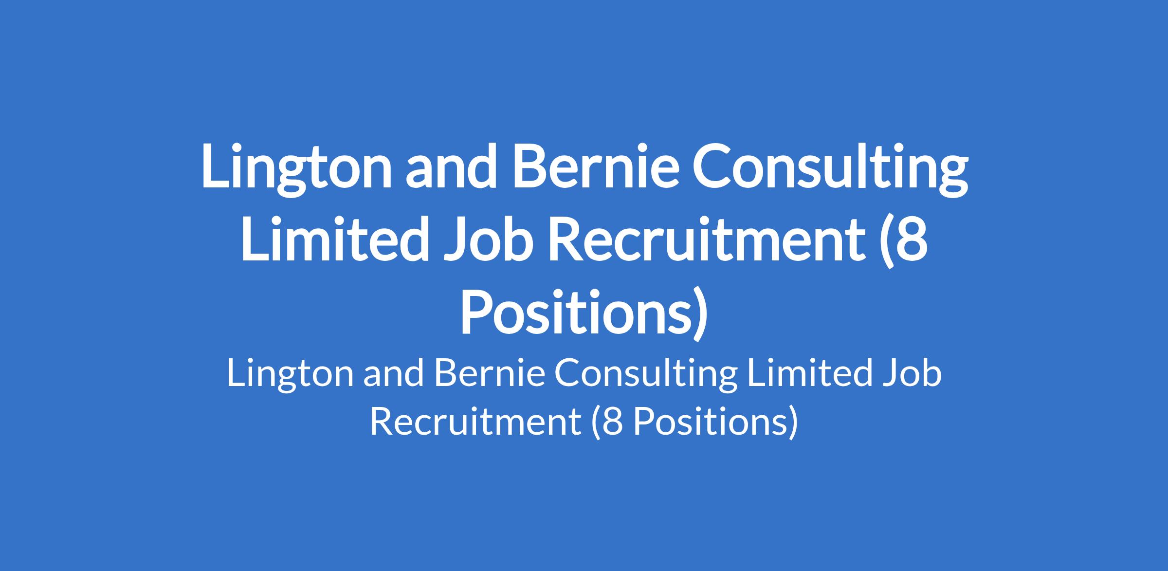 Lington and Bernie Consulting Limited is recruiting suitably qualified candidates to fill the following positions in Lagos State: Office Pool Driver; Company Driver; Accountant; Admin Officer; Personal Assistant; Steward; Housekeeper (for a Clergywoman); and Front Desk Officer.