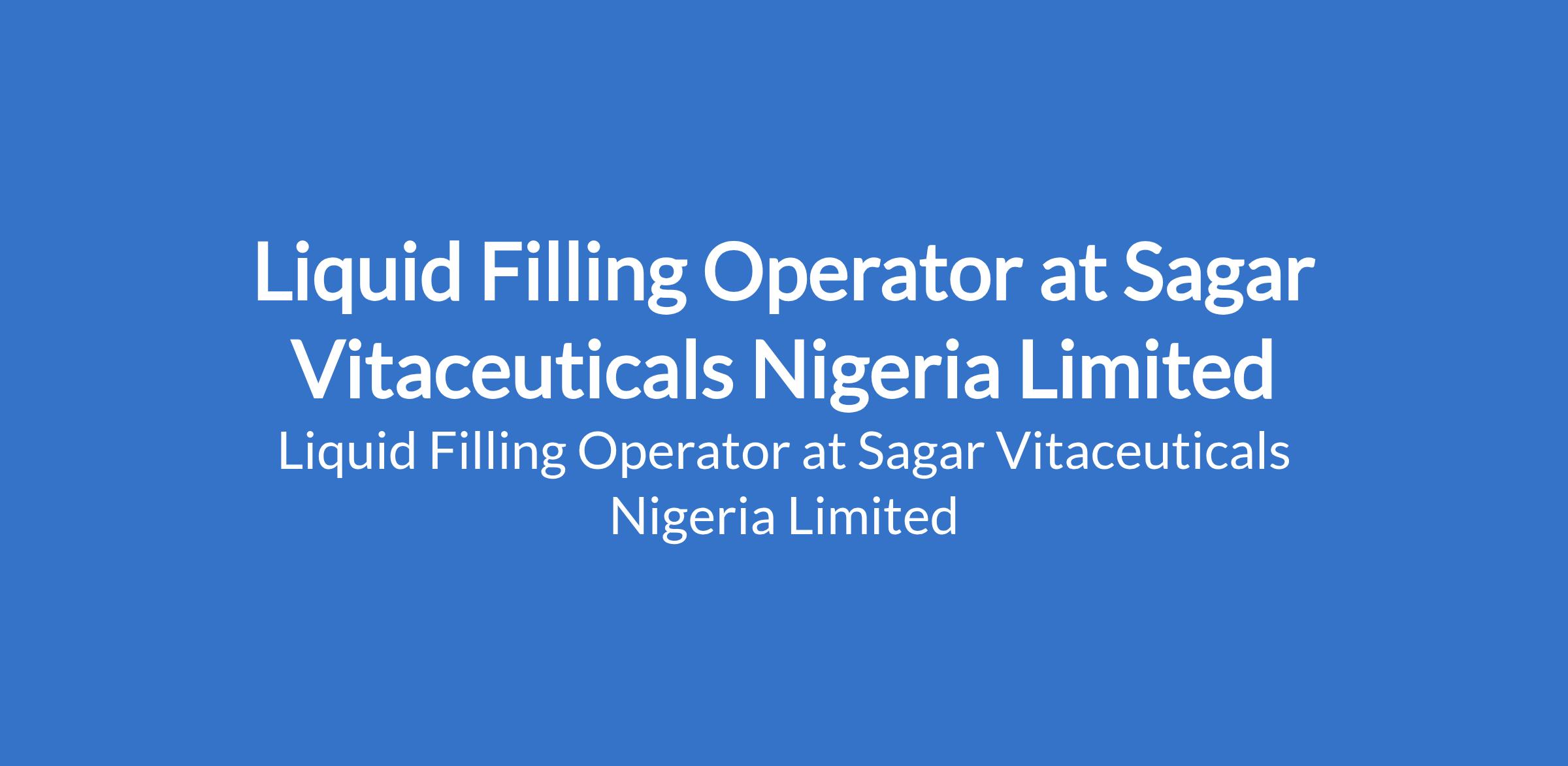 Liquid Filling Operator at Sagar Vitaceuticals Nigeria Limited