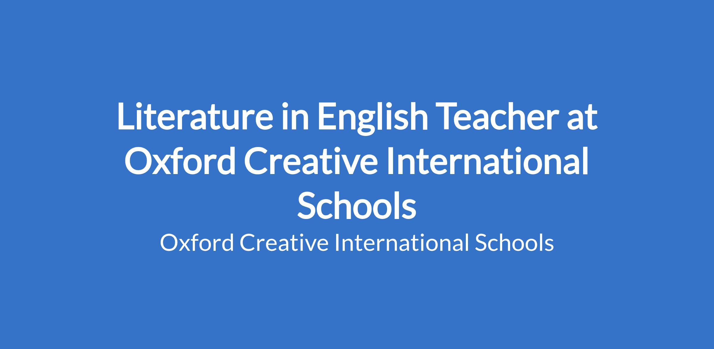 Literature in English Teacher at Oxford Creative International Schools