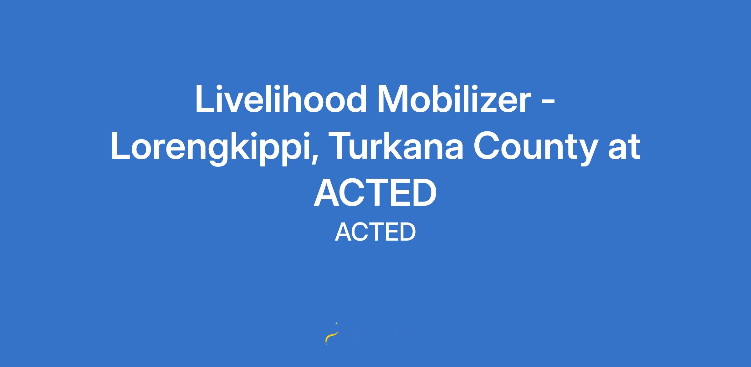 Livelihood Mobilizer - Lorengkippi, Turkana County at ACTED
