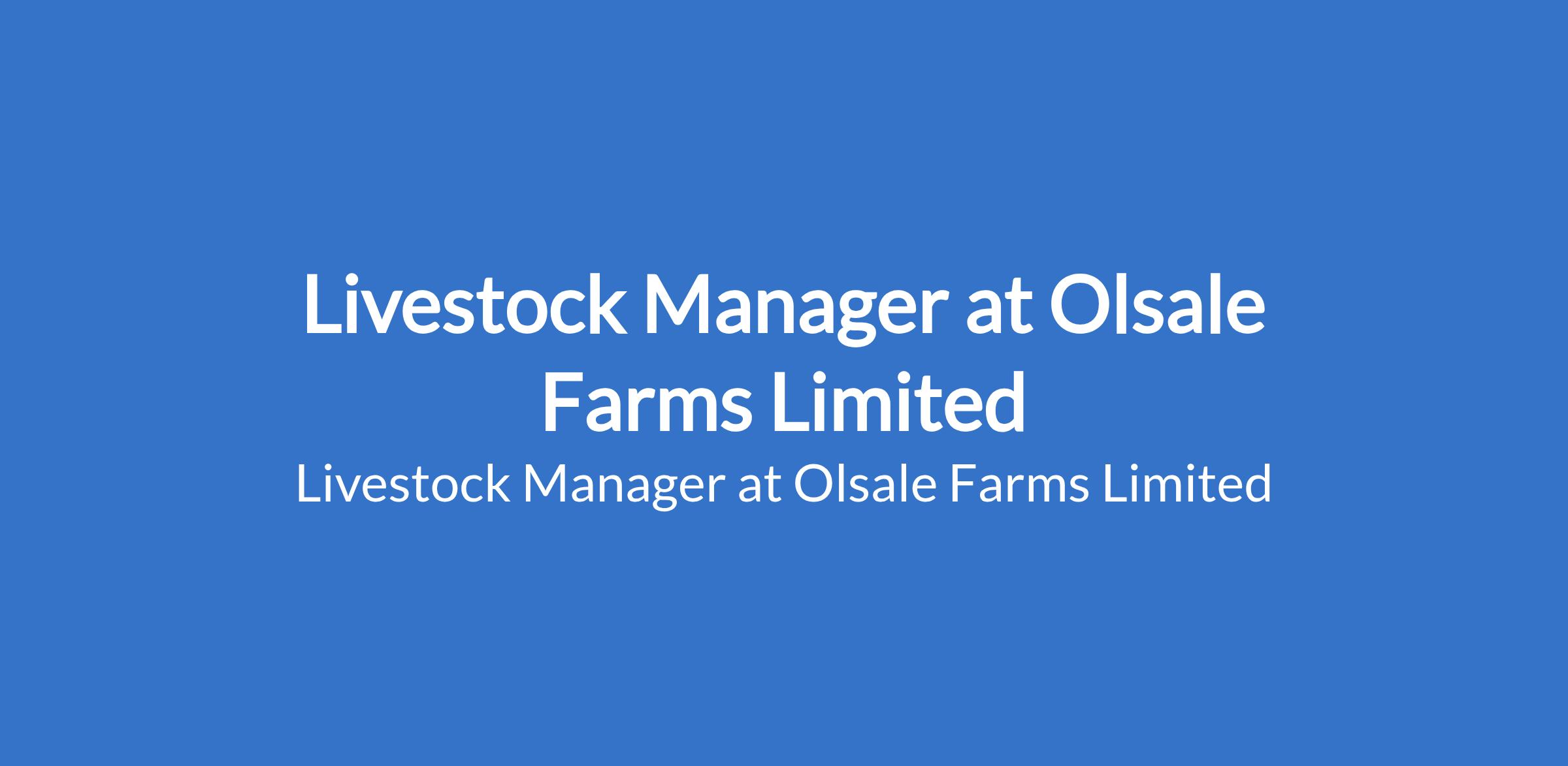 Olsale Farms Limited is recruiting to fill the position of: Livestock Manager. The position is located in Ogun State. Interested candidates should possess an SSCE or OND qualification in Animal Husbandry, Livestock Production or related fields with at least 5 years of hands-on experience in animal husbandry, with proven expertise in piggery management.