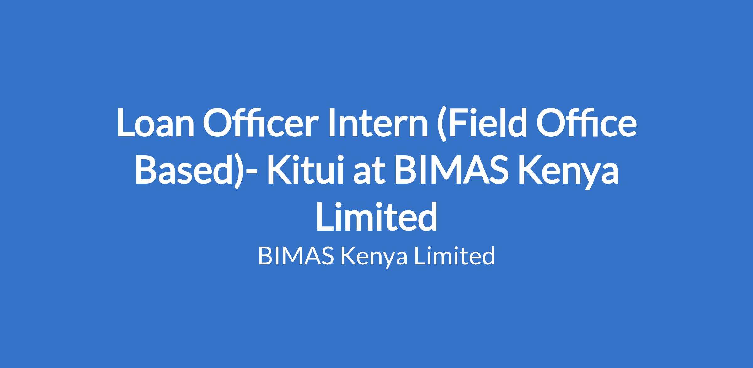 Loan Officer Intern (Field Office Based)- Kitui at BIMAS Kenya Limited