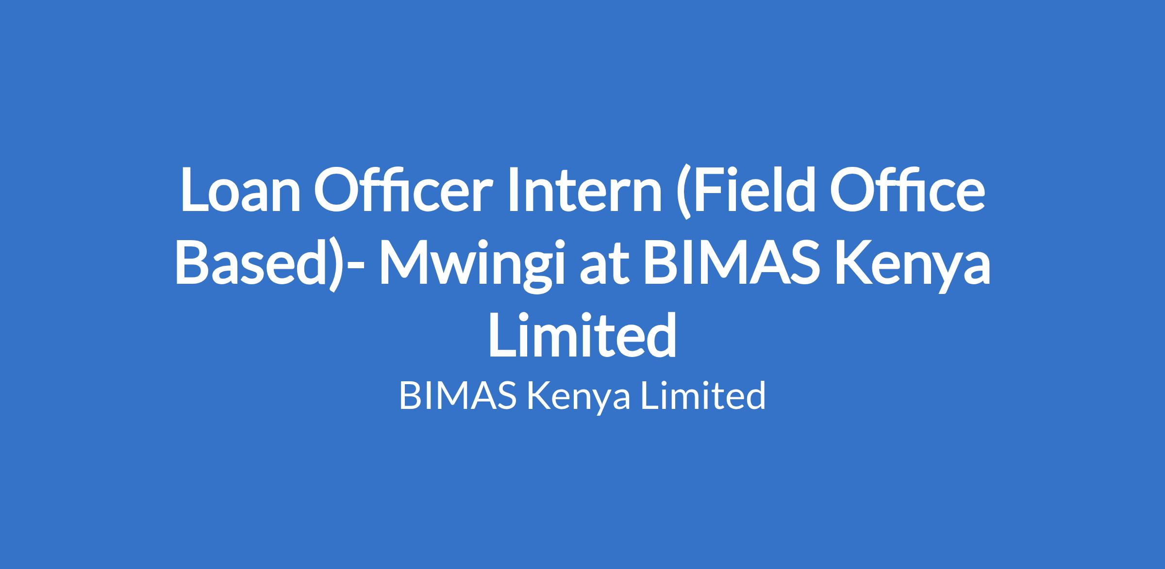 Loan Officer Intern (Field Office Based)- Mwingi at BIMAS Kenya Limited