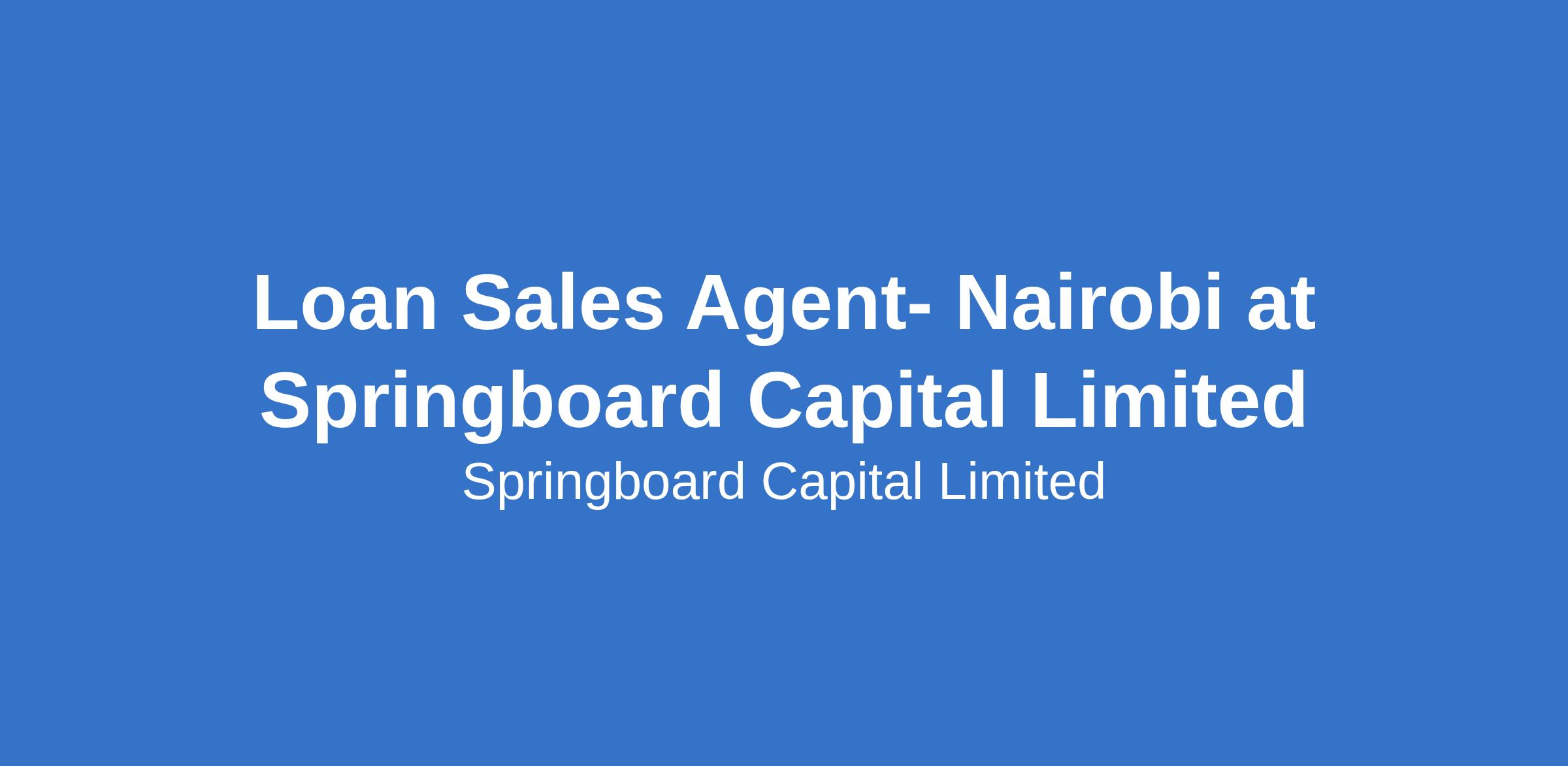 Loan Sales Agent- Nairobi at Springboard Capital Limited