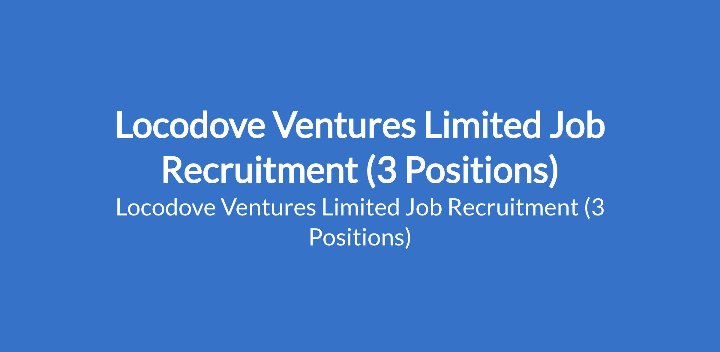 Locodove Ventures Limited Job Recruitment (3 Positions)