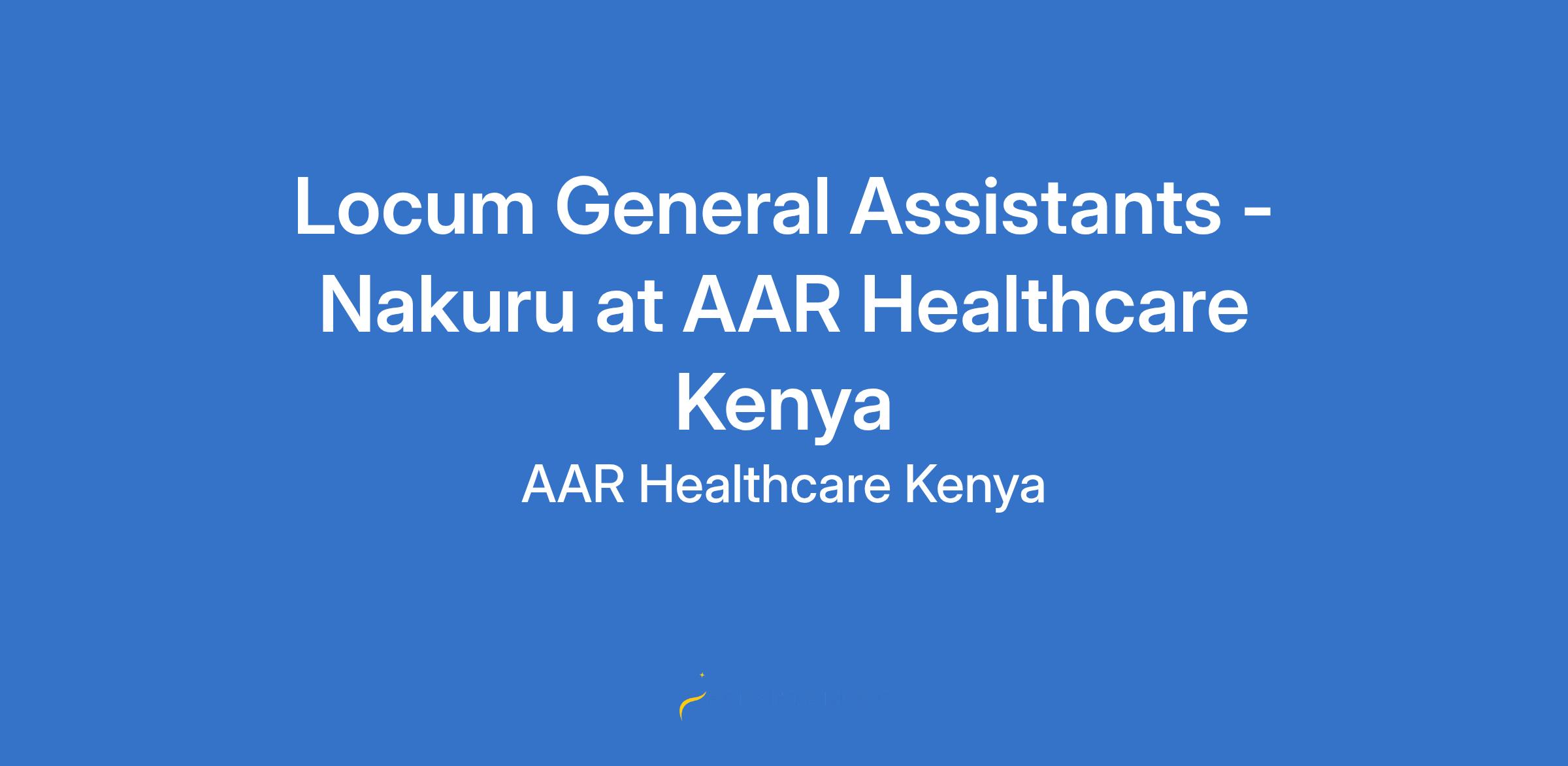Locum General Assistants - Nakuru at AAR Healthcare Kenya
