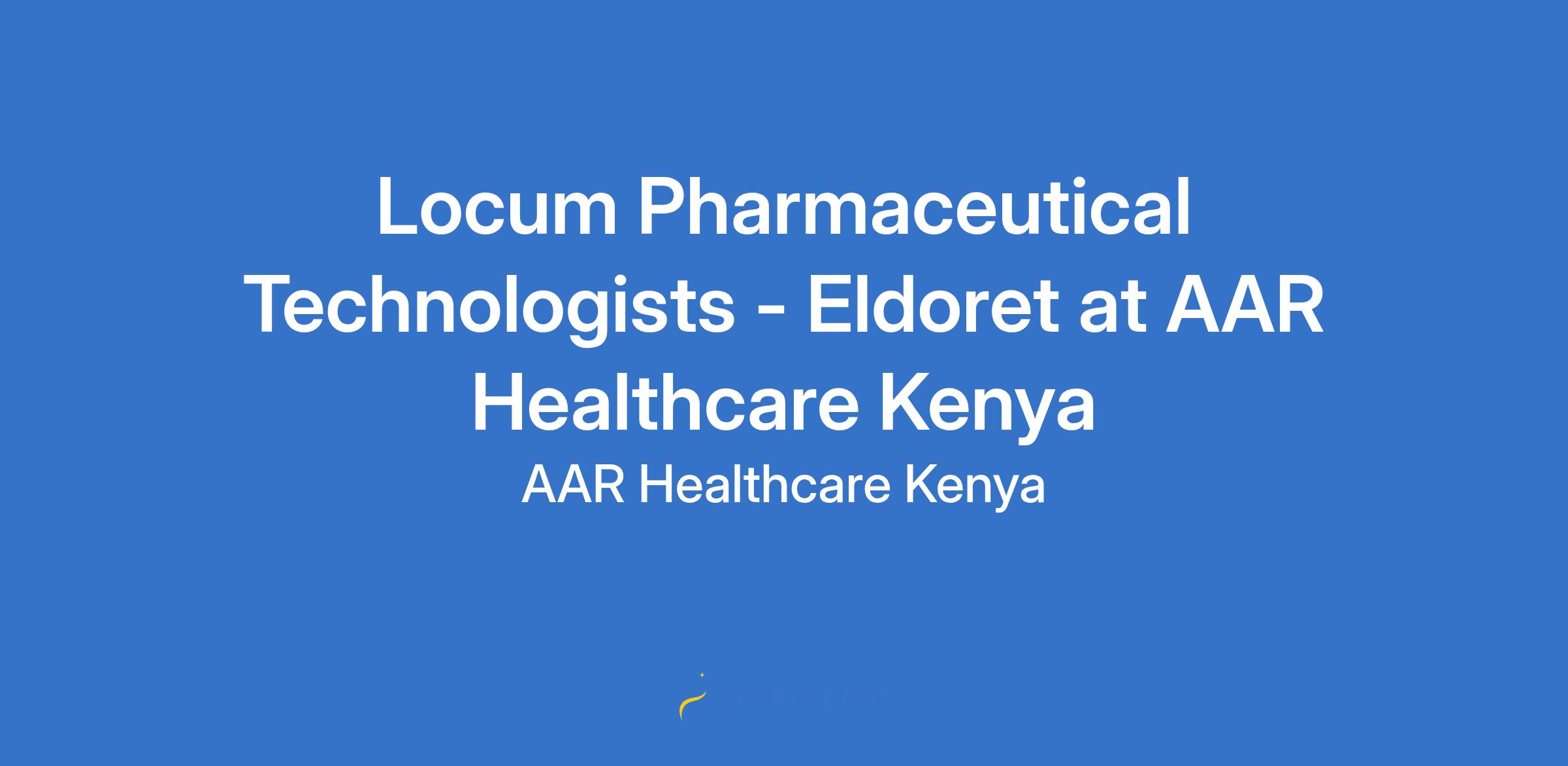 Locum Pharmaceutical Technologists - Eldoret at AAR Healthcare Kenya