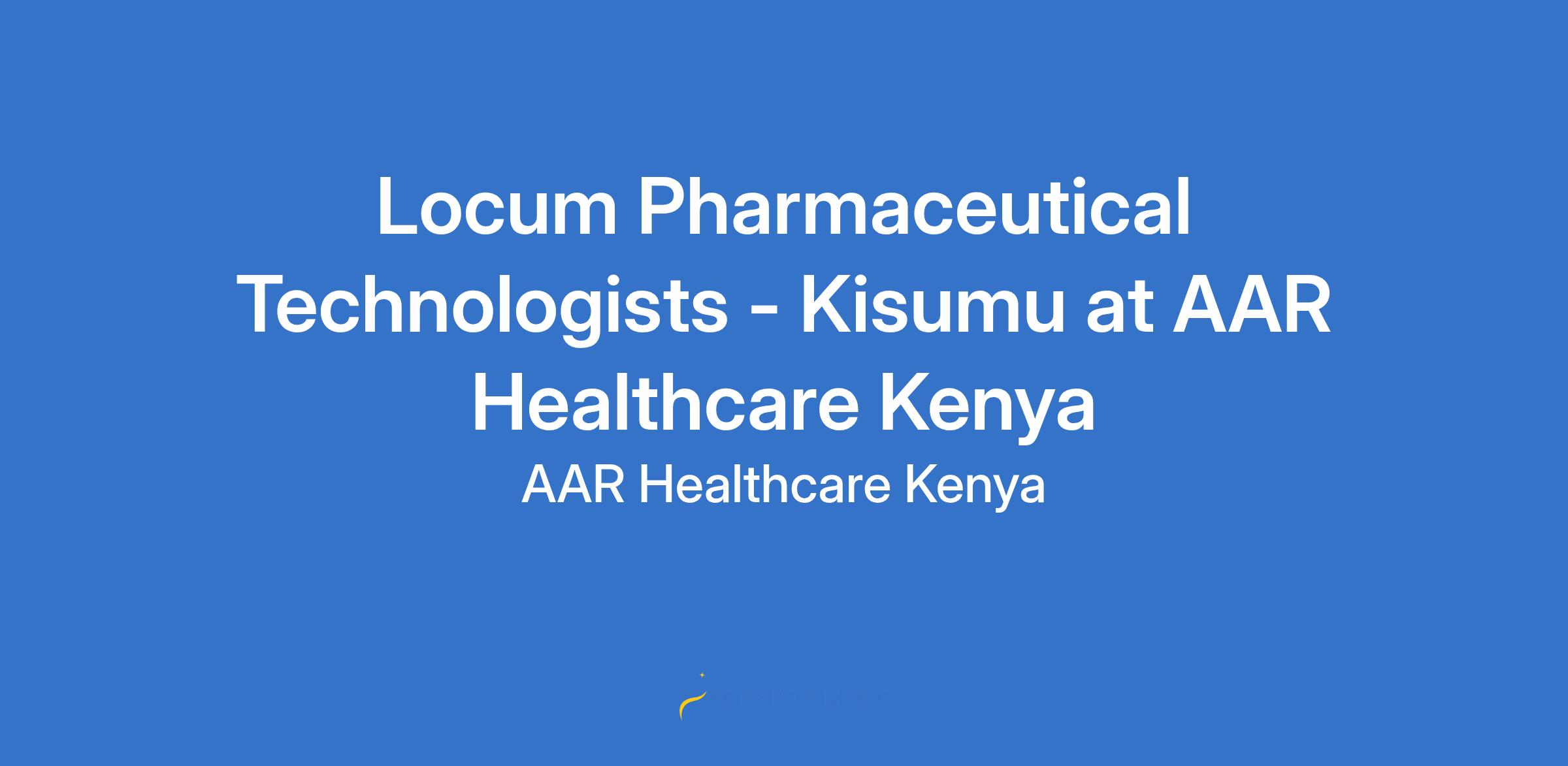 Locum Pharmaceutical Technologists - Kisumu at AAR Healthcare Kenya