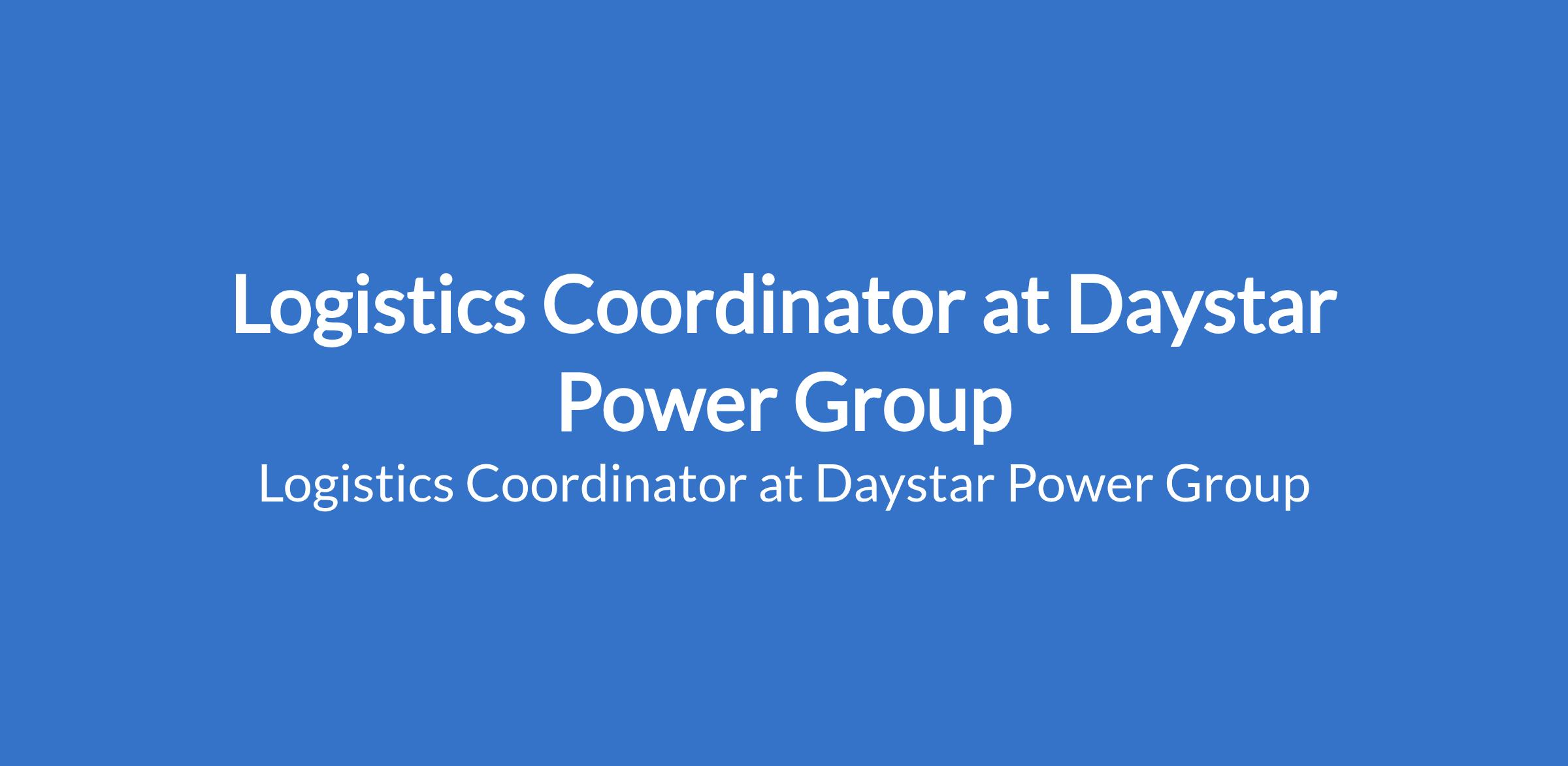 Daystar Power Group is recruiting to fill the position of: Logistics Coordinator. The position is located in Lagos State. Interested candidates should possess a Bachelor's Degree or HND in Supply Chain Management, Sciences, Accounting, Business Administration, Engineering or relevant disciplines with a minimum of 5 years proven experience in logistics operation or a similar position.